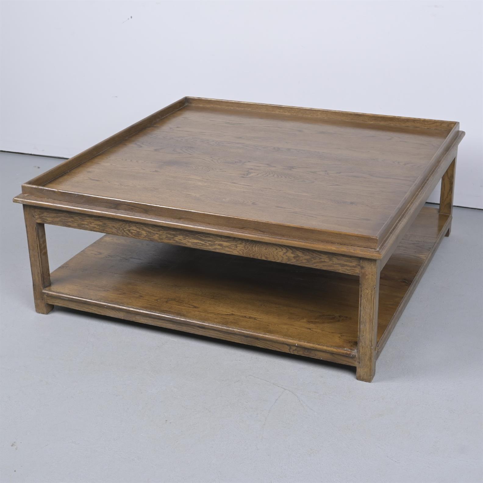 AN OAK COUNTRY TYPE SQUARE COFFEE TABLE (46H X 120W X 120D CM) (THIS ITEM MUST BE REMOVED BY CARRIERS AT THE CUSTOMER'S EXPENSE. LEONARD JOEL STAFF CANNOT ASSIST CARRYING THIS ITEM)