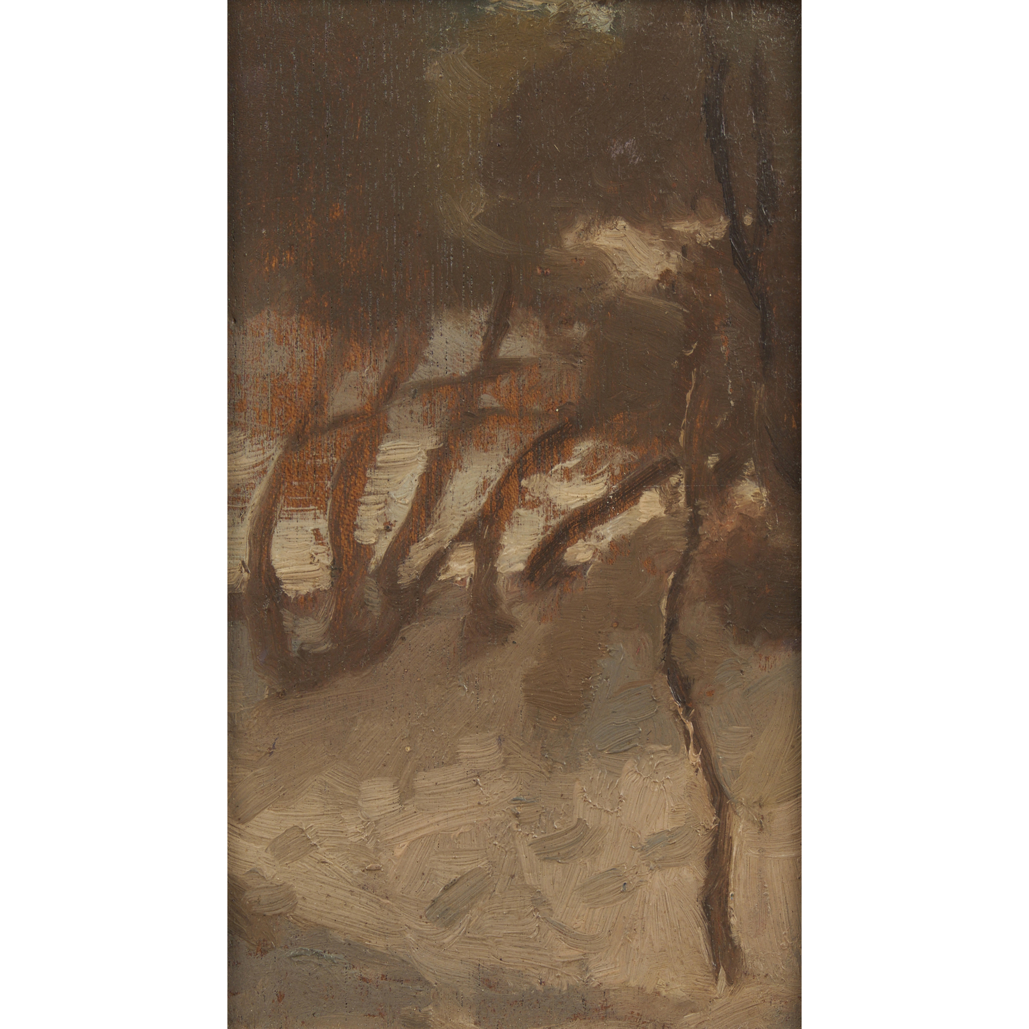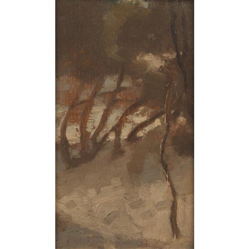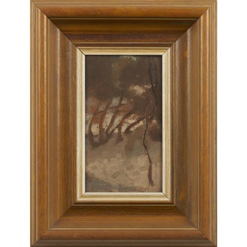 CLARICE BECKETT (1887-1935) Soft Evening Study for Princes Bridge c.1930 (verso) oil on board, double-sided 20.5 x 20.5cm