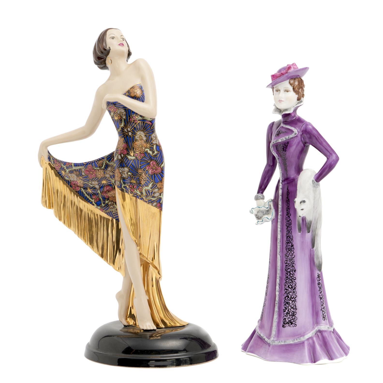 TWO COALPORT FIGURES INCLUDING ART DECO THE FLAPPER, AND A WINTERS DAY H.31CM (TALLEST), LEONARD JOEL DELIVERY SIZE: MEDIUM
