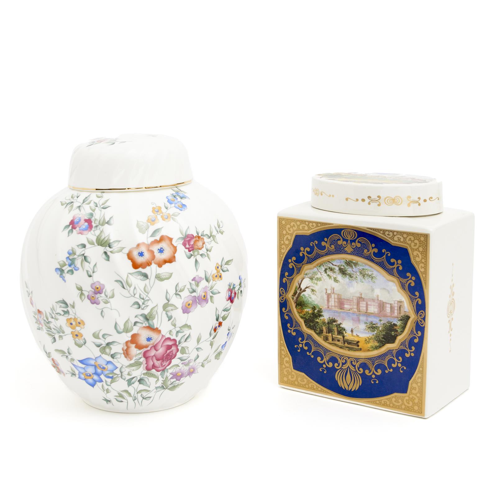 TWO WEDGEWOOD AND ROYAL CAULDEN BRISTOL IRONSTONE LIDDED GINGER JARS H.20CM (TALLEST), LEONARD JOEL DELIVERY SIZE: MEDIUM
