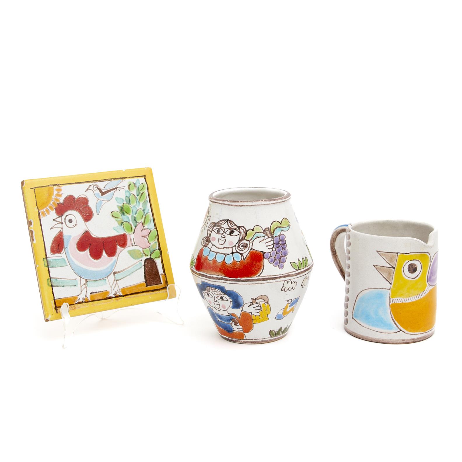 A GROUP OF THREE ITALIAN DESIMONE VASES, JUG AND TILE H.16CM, LEONARD JOEL DELIVERY SIZE: MEDIUM