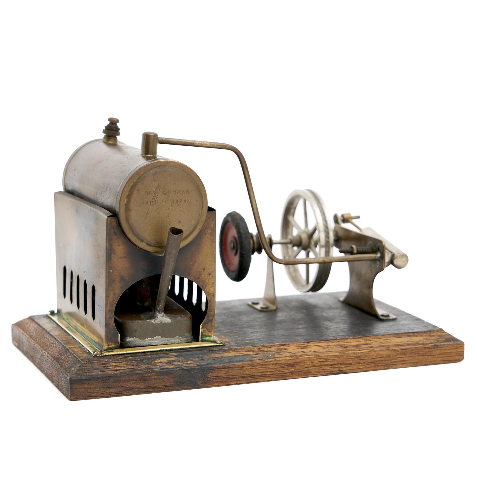 AN AUSTRALIAN MADE COPPER AND BRASS WOODEN MOUNTED DONKEY ENGINE, LEONARD JOEL DELIVERY SIZE: SMALL