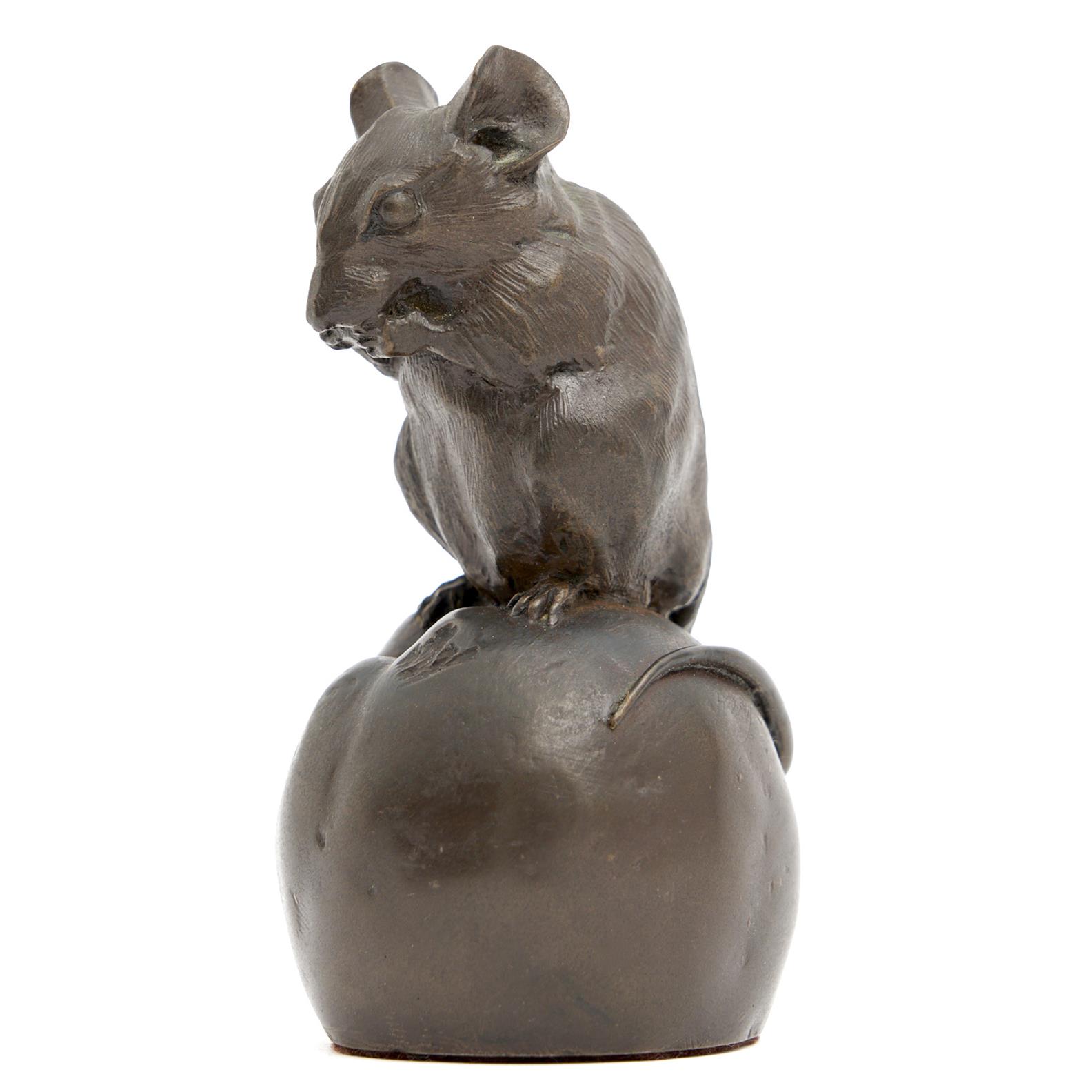 A BRONZED MOUSE ON PIECE OF NATURALISTIC FRUIT H. 11.5CM , LEONARD JOEL DELIVERY SIZE: SMALL