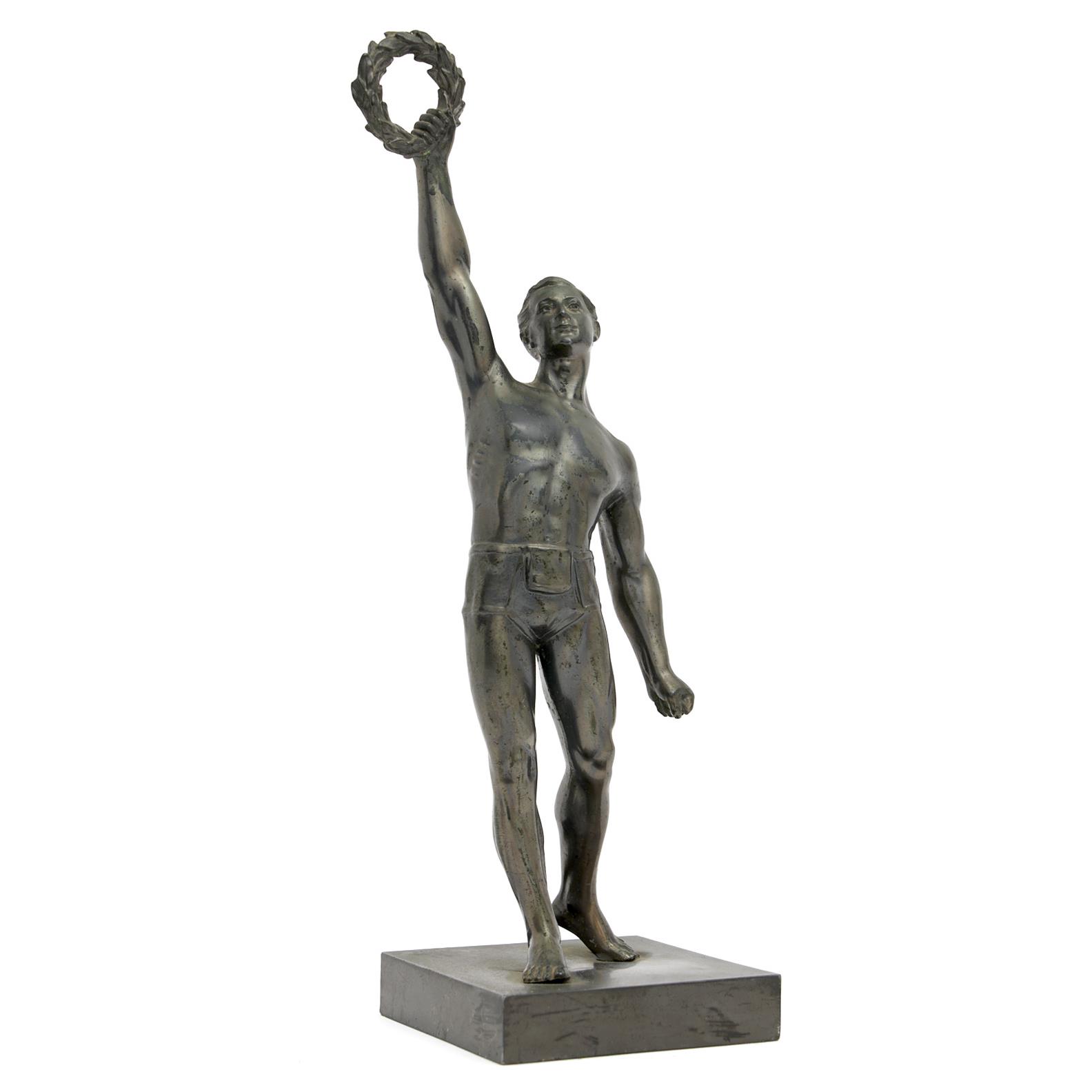 A SPELTER FIGURE OF AN OLYMPIAN H.34CM, LEONARD JOEL DELIVERY SIZE: MEDIUM