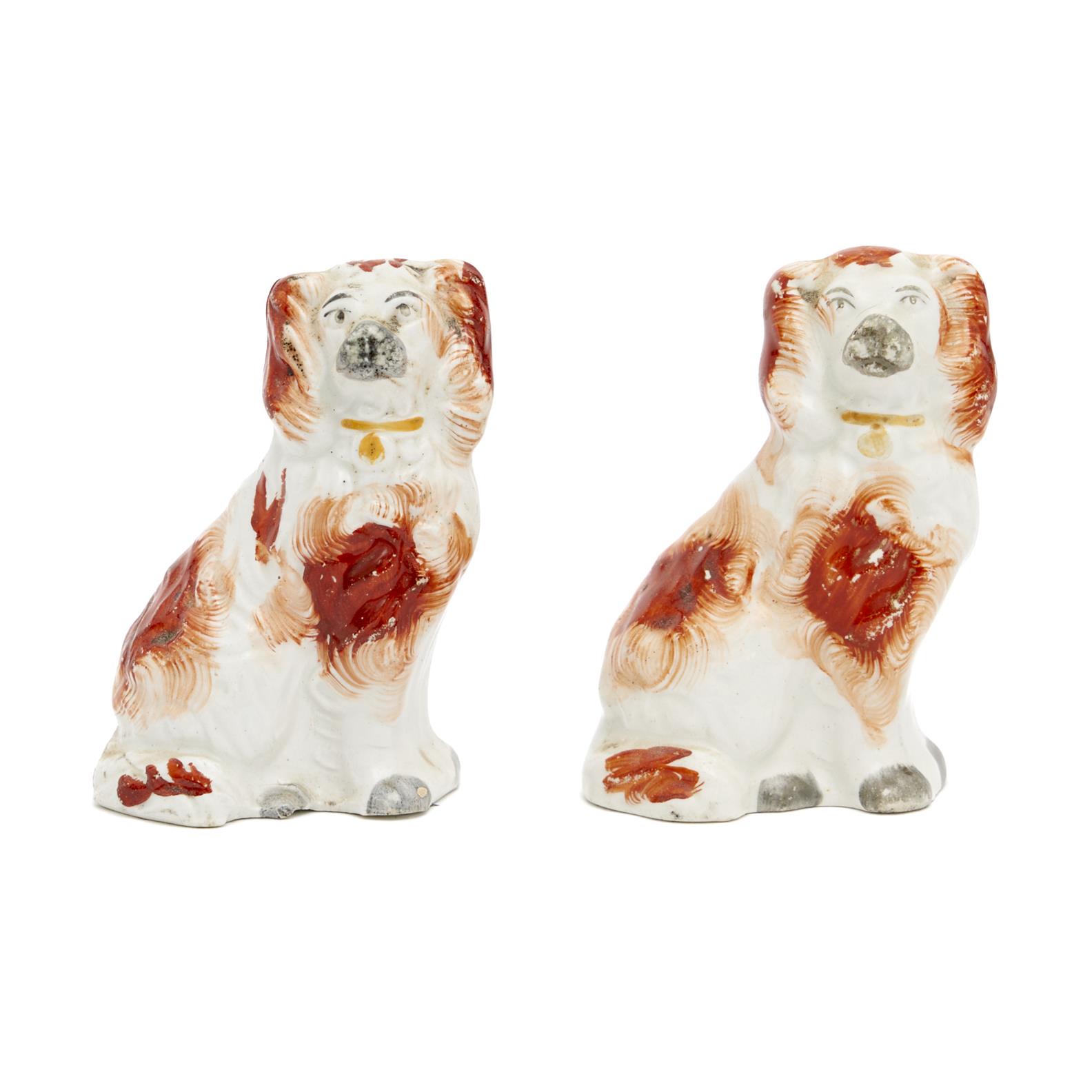 TWO MINIATURE STAFFORDSHIRE DOG FIGURES H.9CM, LEONARD JOEL DELIVERY SIZE: SMALL