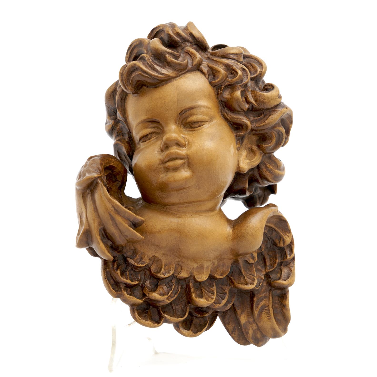 AN ITALIAN CARVED WOODEN CHERUB FIGURE, H17.5CM, LEONARD JOEL DELIVERY SIZE: SMALL