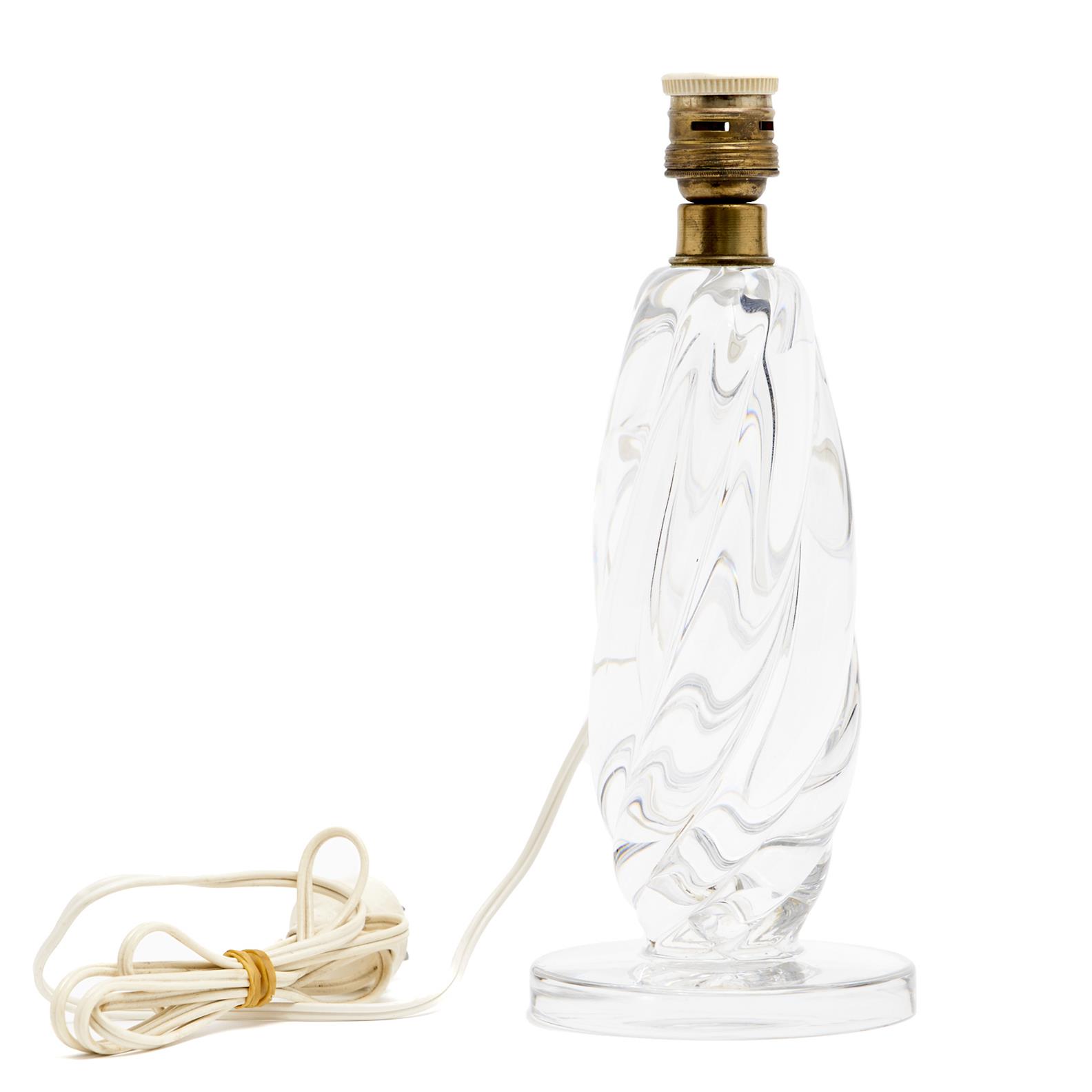 A VAL ST LAMBERT CLEAR TWISTED GLASS BASED TABLE LAMP H.30CM, LEONARD JOEL DELIVERY SIZE: MEDIUM