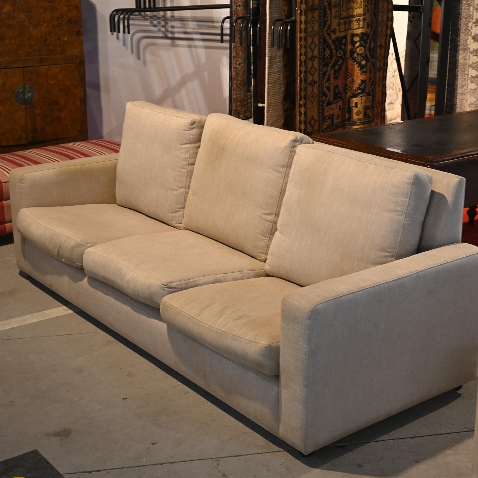 A THREE SEAT SOFA BY CAVALIER FURNITURE, UPHOLSTERED IN WARWICK FABRIC (A/F) (87H X 241W X 91D CM) (THIS ITEM MUST BE REMOVED BY CARRIERS AT THE CUSTOMER'S EXPENSE. LEONARD JOEL STAFF CANNOT ASSIST CARRYING THIS ITEM)