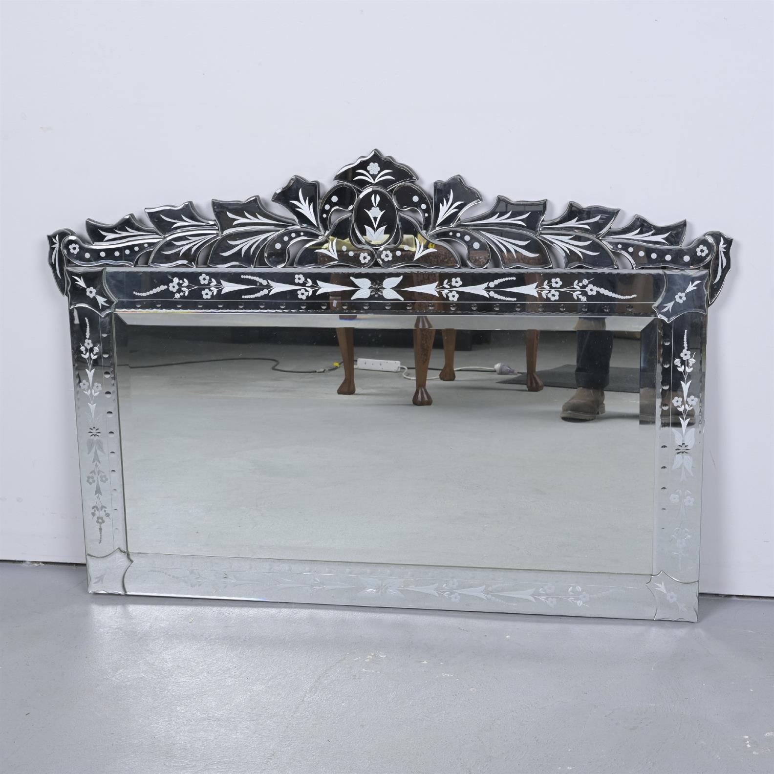 A CONTEMPORARY GLASS MIRROR IN VENETIAN STYLE (76H X 110W CM) (LEONARD JOEL DELIVERY SIZE: LARGE)