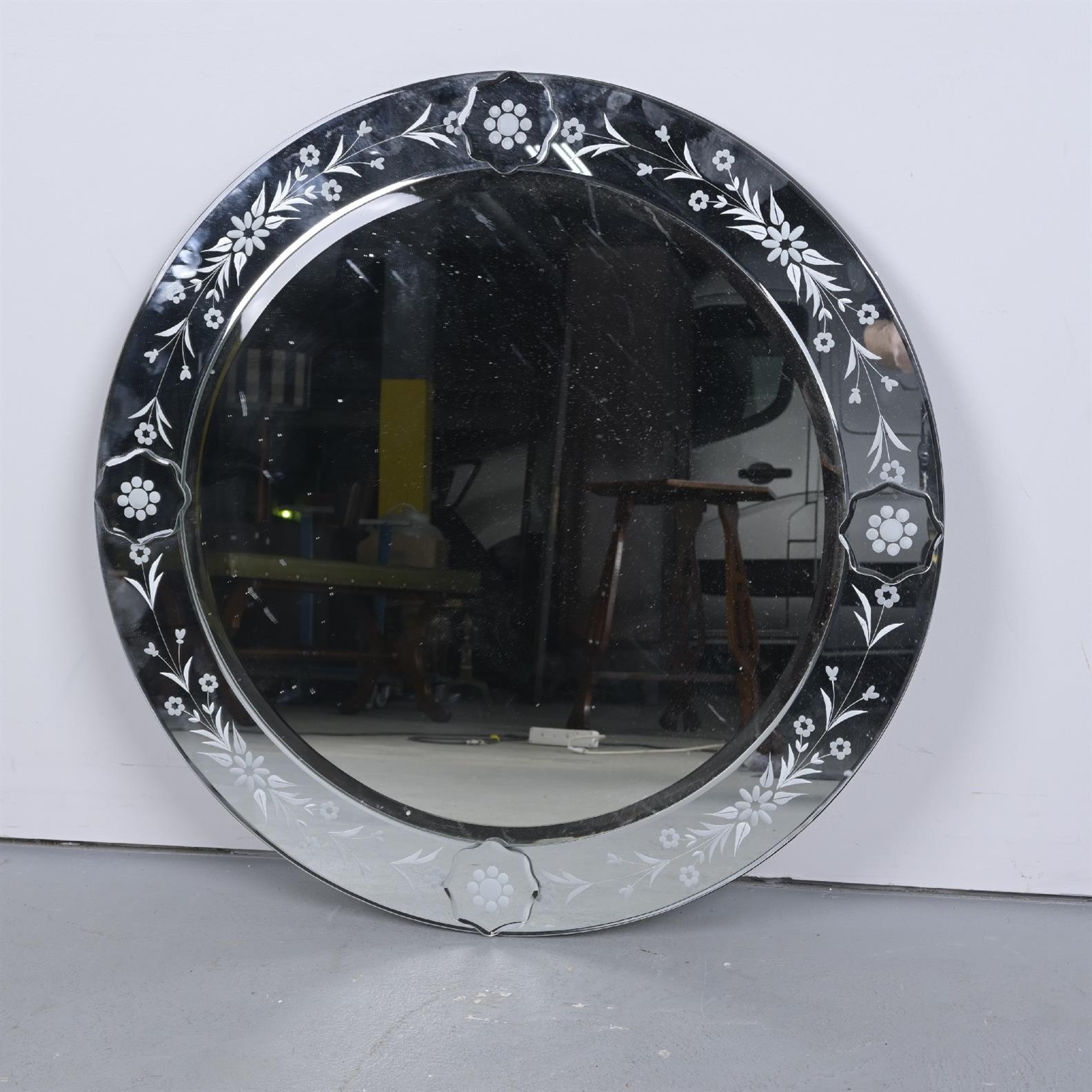 A CONTEMPORARY GLASS CIRCULAR MIRROR IN VENETIAN STYLE (80DIA CM) (LEONARD JOEL DELIVERY SIZE: LARGE)