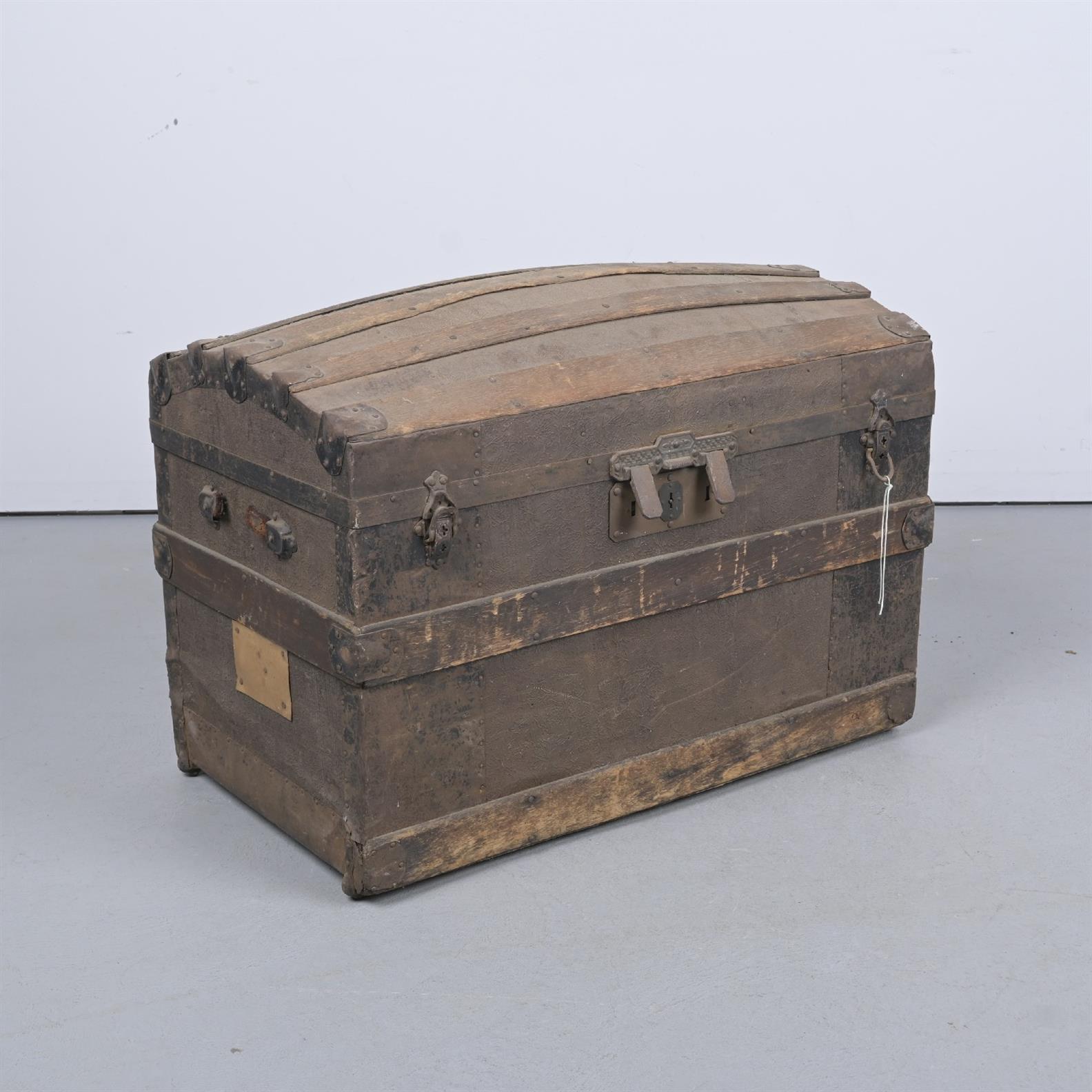 AN EARLY 20th CENTURY METAL BOUND CHEST (A/F) (66H X 88W X 50D CM) (LEONARD JOEL DELIVERY SIZE: X-LARGE)