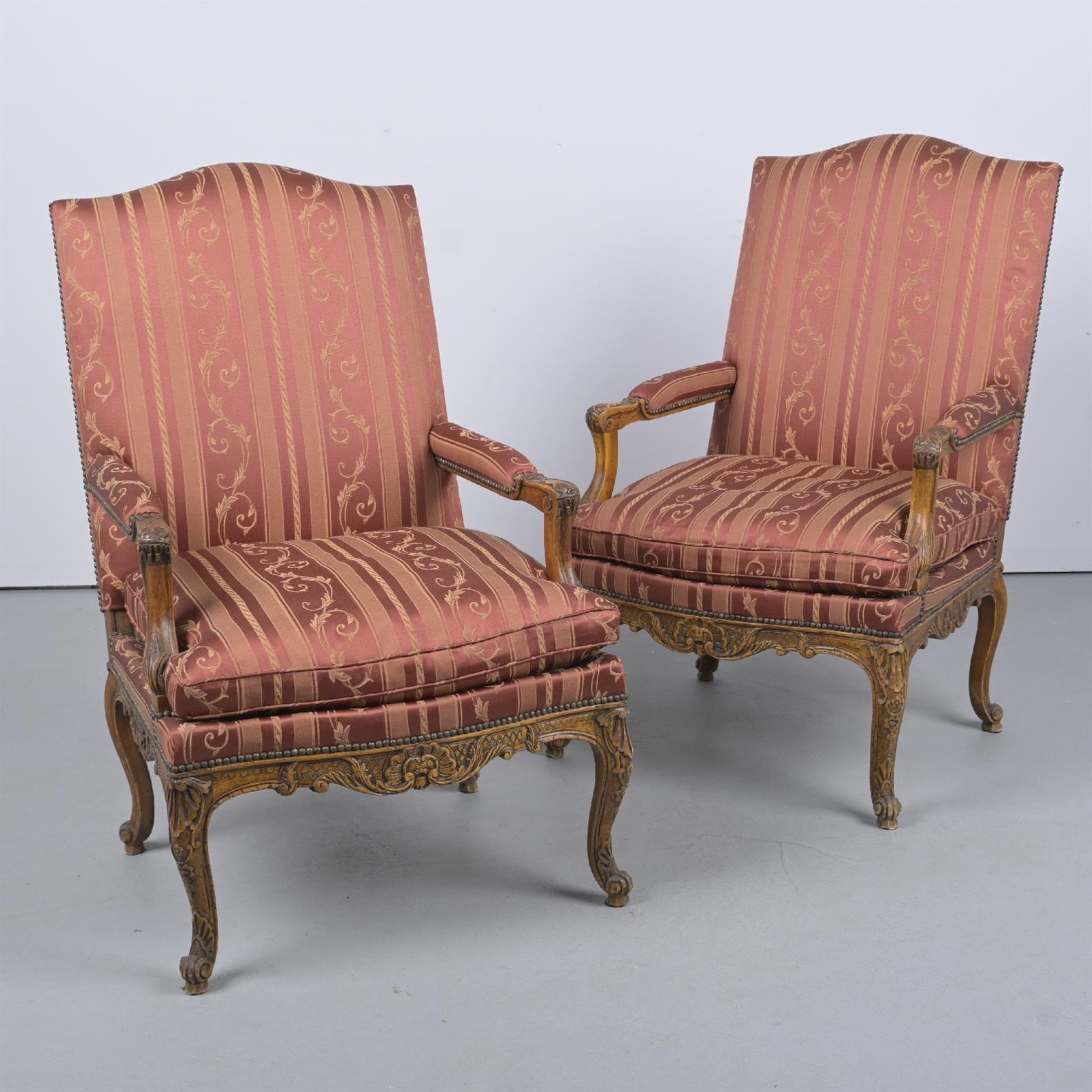 A PAIR OF RÉGENCE-STYLE FAUTEUILS BY GRAHAM GEDDES (115H X 67W X 90D CM) (LEONARD JOEL DELIVERY SIZE: X-LARGE)