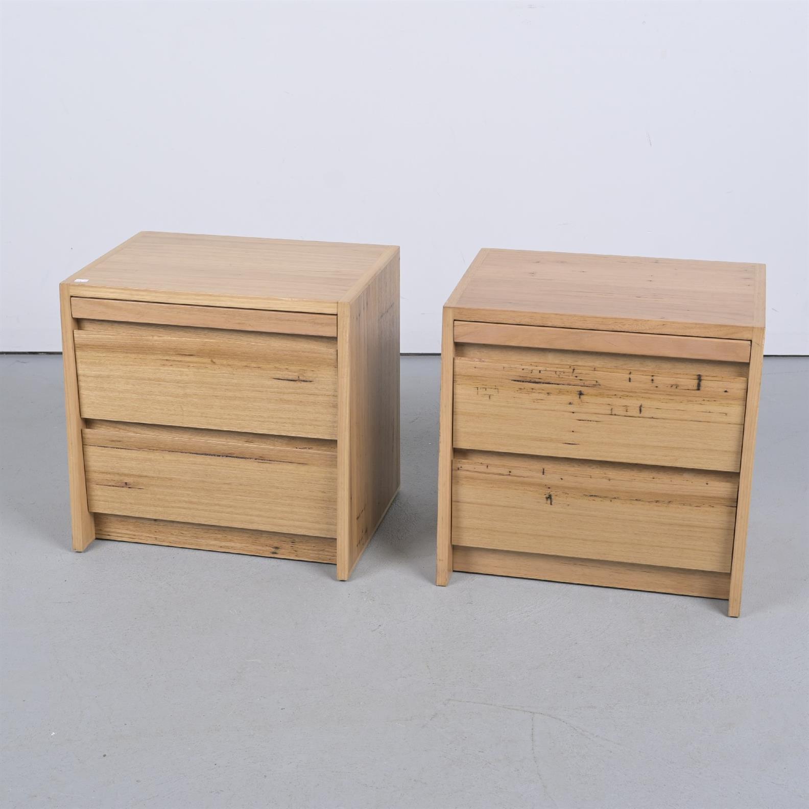A PAIR OF HEAVY BEDSIDE CABINETS WITH PULL OUT TRAYS (50H X 51W X 36D CM) (LEONARD JOEL DELIVERY SIZE: X-LARGE)