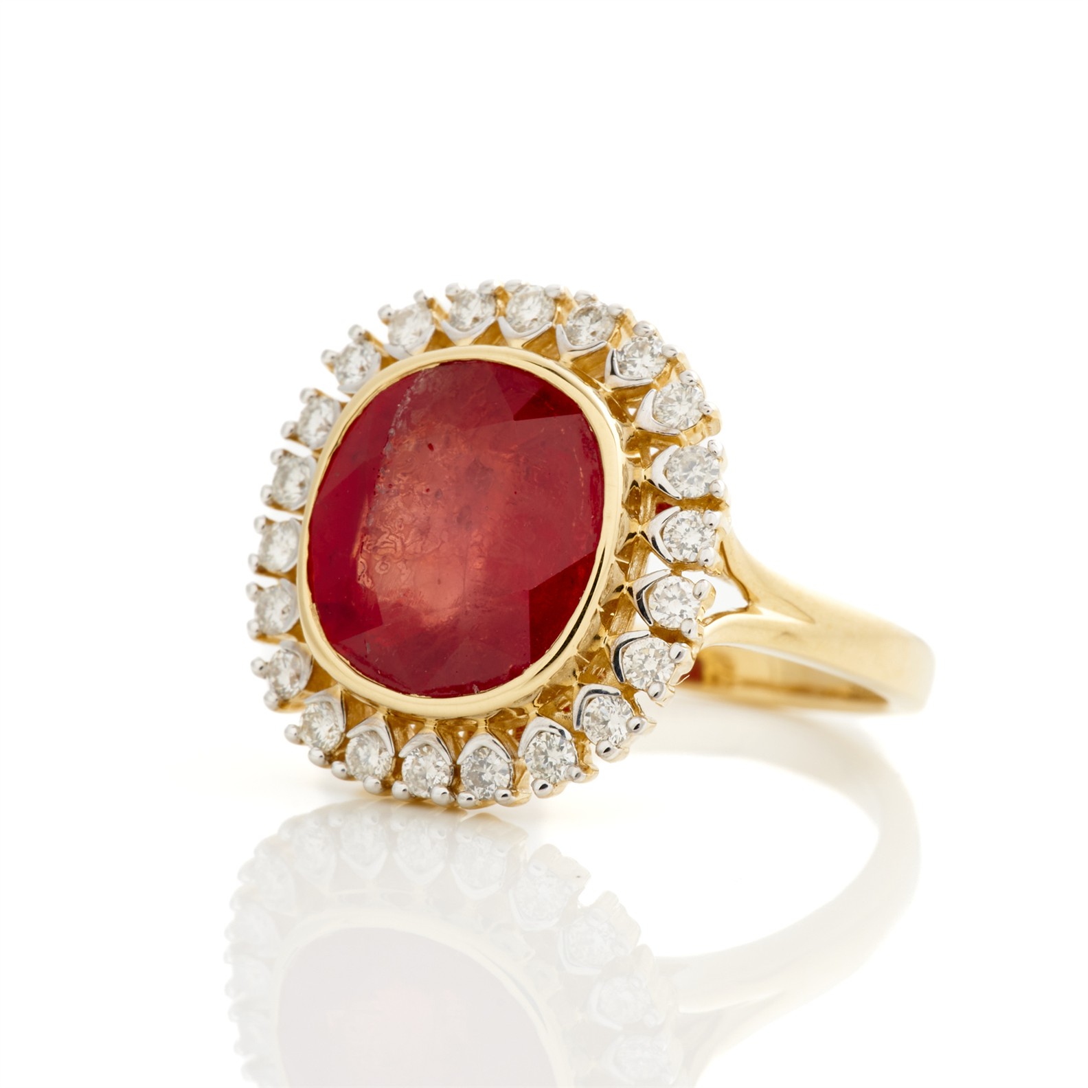 A SAPPHIRE AND DIAMOND RING IN 18CT TWO-TONE GOLD, THE SAPPHIRE WEIGHING 6.92CTS, WITH DIAMONDS TOTALLING 0.52CTS, SIZE P, ACCOMPANIED BY A VALUATION