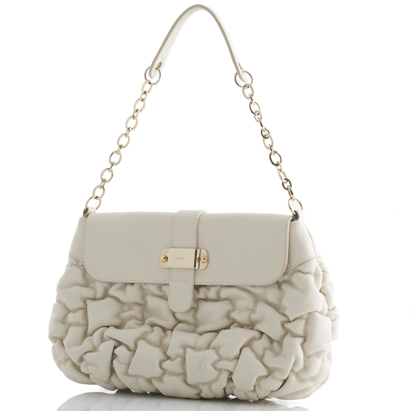 FURLA, A HANDBAG STYLED IN CREAM LEATHER, FEATURING RUCHED DETAIL, WITH GOLD TONE HARDWARE, 19 X 32 X 4CM