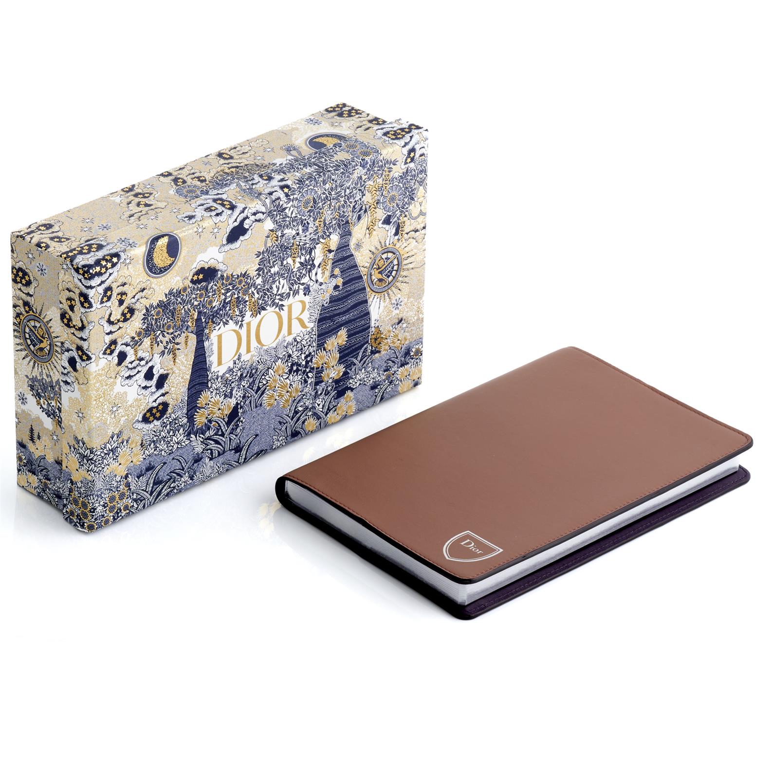DIOR, A NOTEPAD TO A COVER IN TAN LEATHER, 22 X 14 X 2CM, ACCOMPANIED BY A BOX