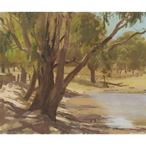 CLARICE BECKETT (1887-1935) Soft Evening Study for Princes Bridge c.1930 (verso) oil on board, double-sided 20.5 x 20.5cm