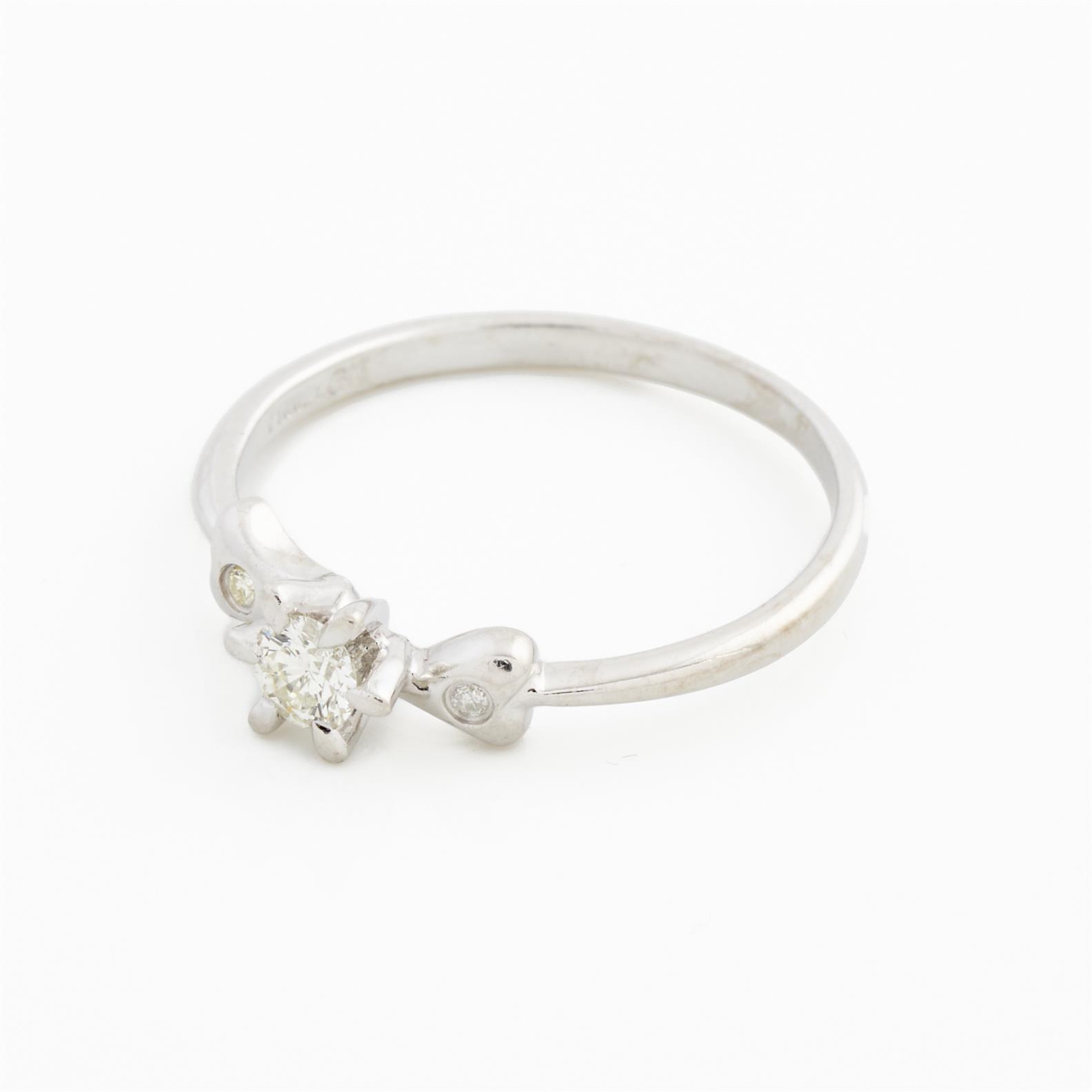 A DIAMOND RING IN PLATINUM, THE DIAMOND WEIGHING APPROXIMATELY 0.15CTS, SIZE M, 2.2GMS