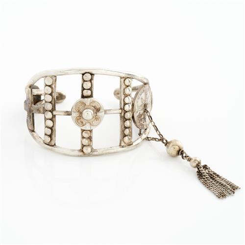 A VINTAGE CUFF BANGLE IN STERLING SILVER, INNER DIAMETER APPROXIMATELY 60MM, 72.6GMS