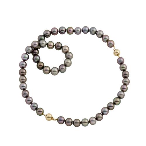 The mid grey body hue of the pearls for the most part has a rose overtone.