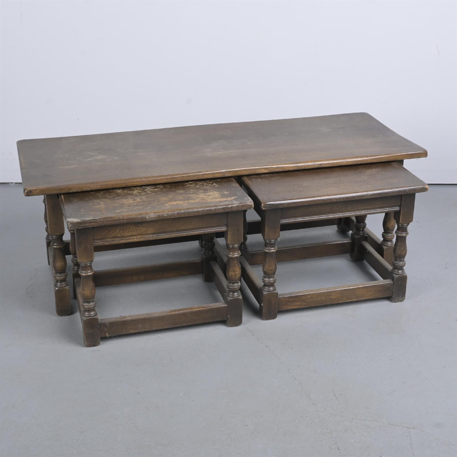 A NEST OF THREE TABLES IN CHARLES II MANNER (A/F) (42H X 116W X 45D CM)
