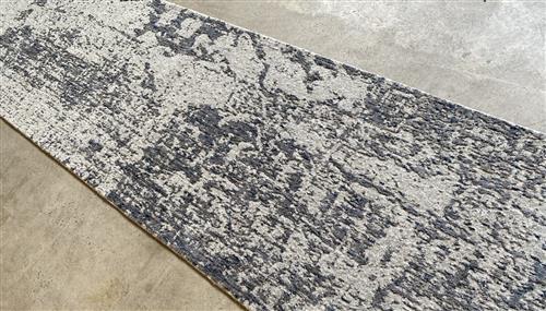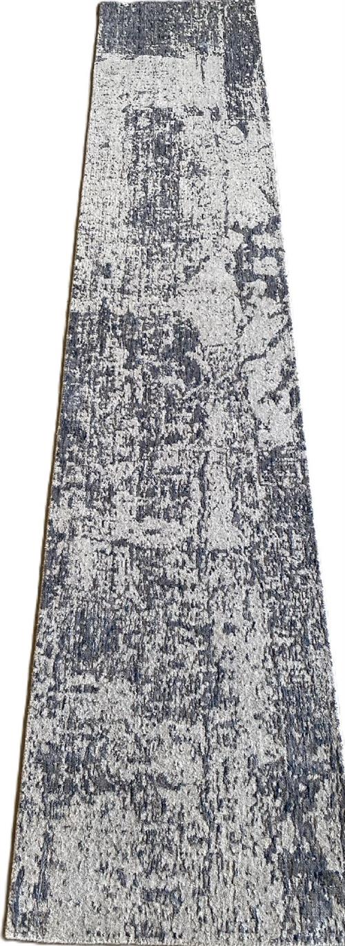 A NEW CONTEMPORARY DESIGNER WOOL RUNNER. WITH ABSTRACT DESIGN EMBOSSED PATTERNS. HANDLOOM WEAVE. THE ENTIRE IN SHADES OF GREY BLUES. IN EXCELLENT CONDITION. ORIGIN: JAIPUR (398 X 77 CM) (PLEASE NOTE THERE MAY BE SOME COLOUR VARIATION FROM PHOTOGRAPH)