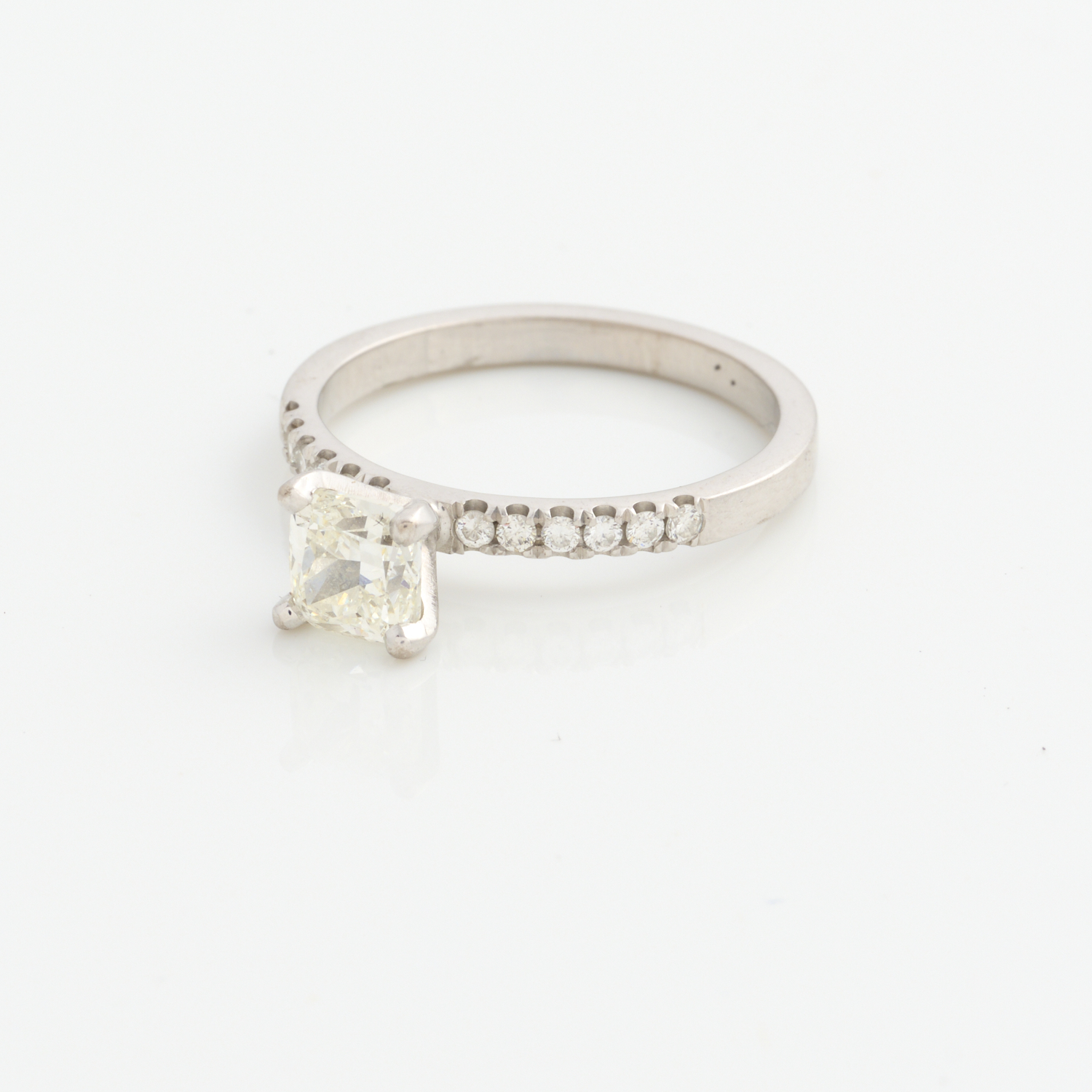 A DIAMOND RING IN 18CT WHITE GOLD, THE CUSHION CUT DIAMOND WEIGHING 1.01CT (G, VS1), SIZE N 1/2, ACCOMPANIED BY AN EGL CERTIFICATE AND VALUATION