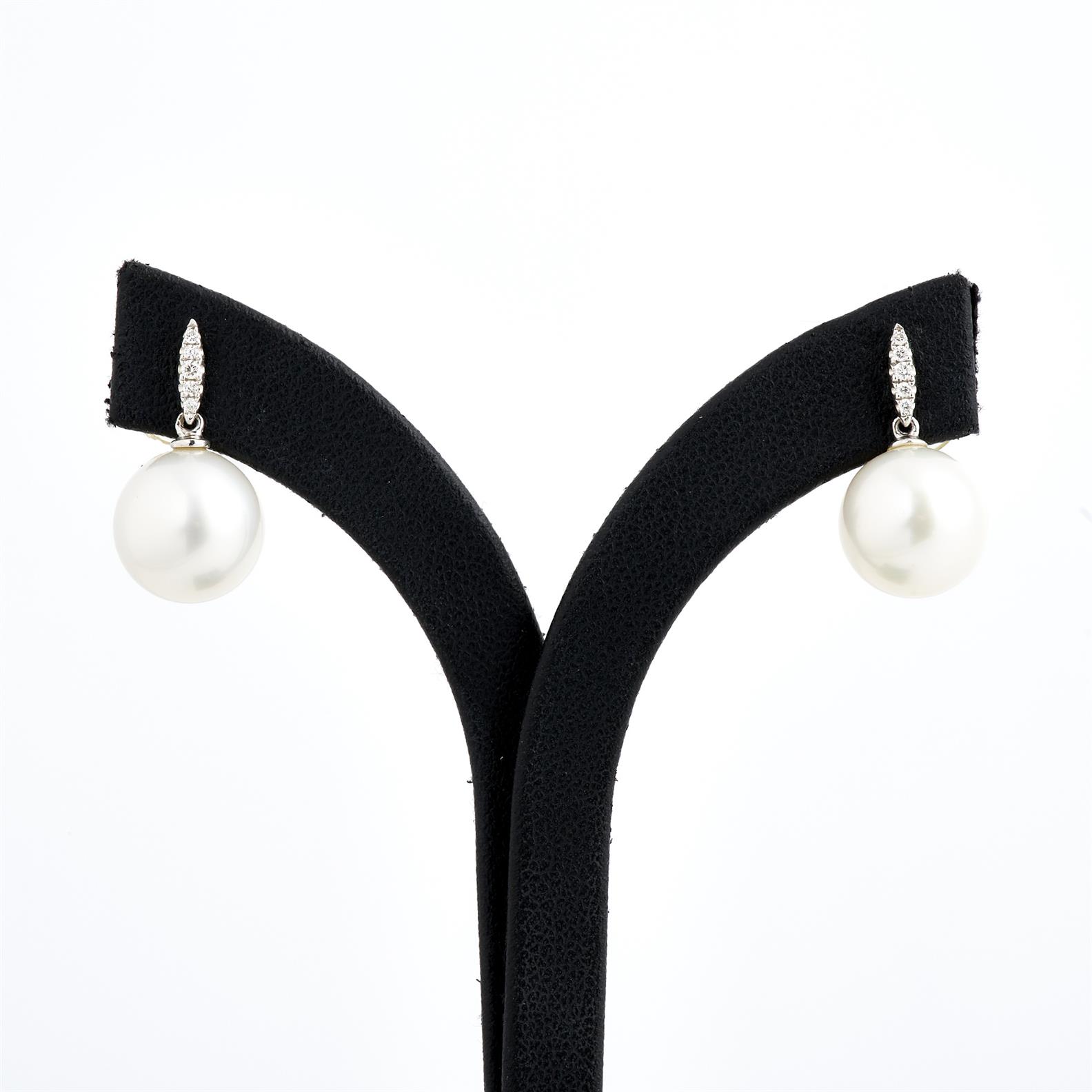 Pearls are of a very good lustre, with minimal pittings and marks. Diamonds secure and accounted for. To plastic backings.