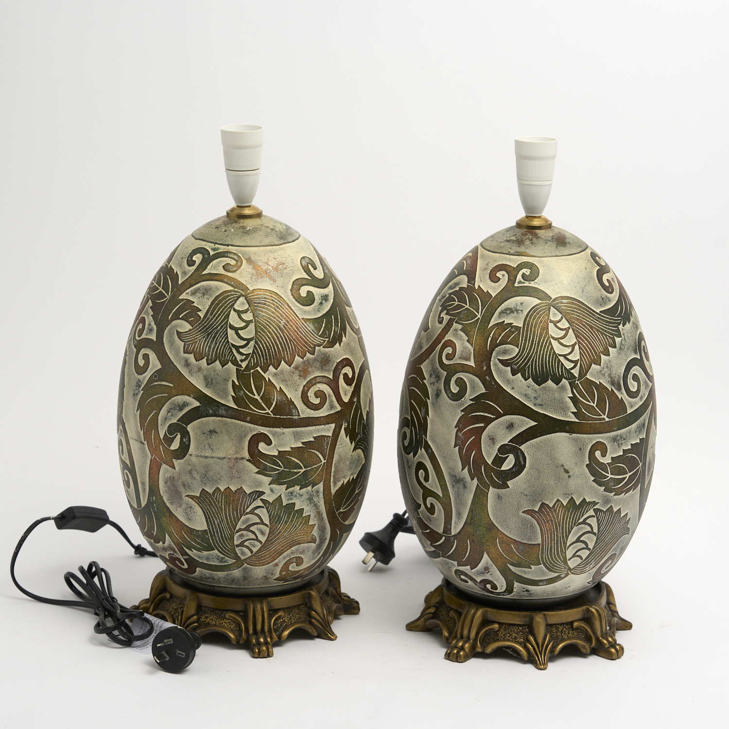 A PAIR OF CHINESE LAMPS ON RAISED FEET WITH FOLIAGE DECORATION H.48CM, LEONARD JOEL DELIVERY SIZE: LARGE