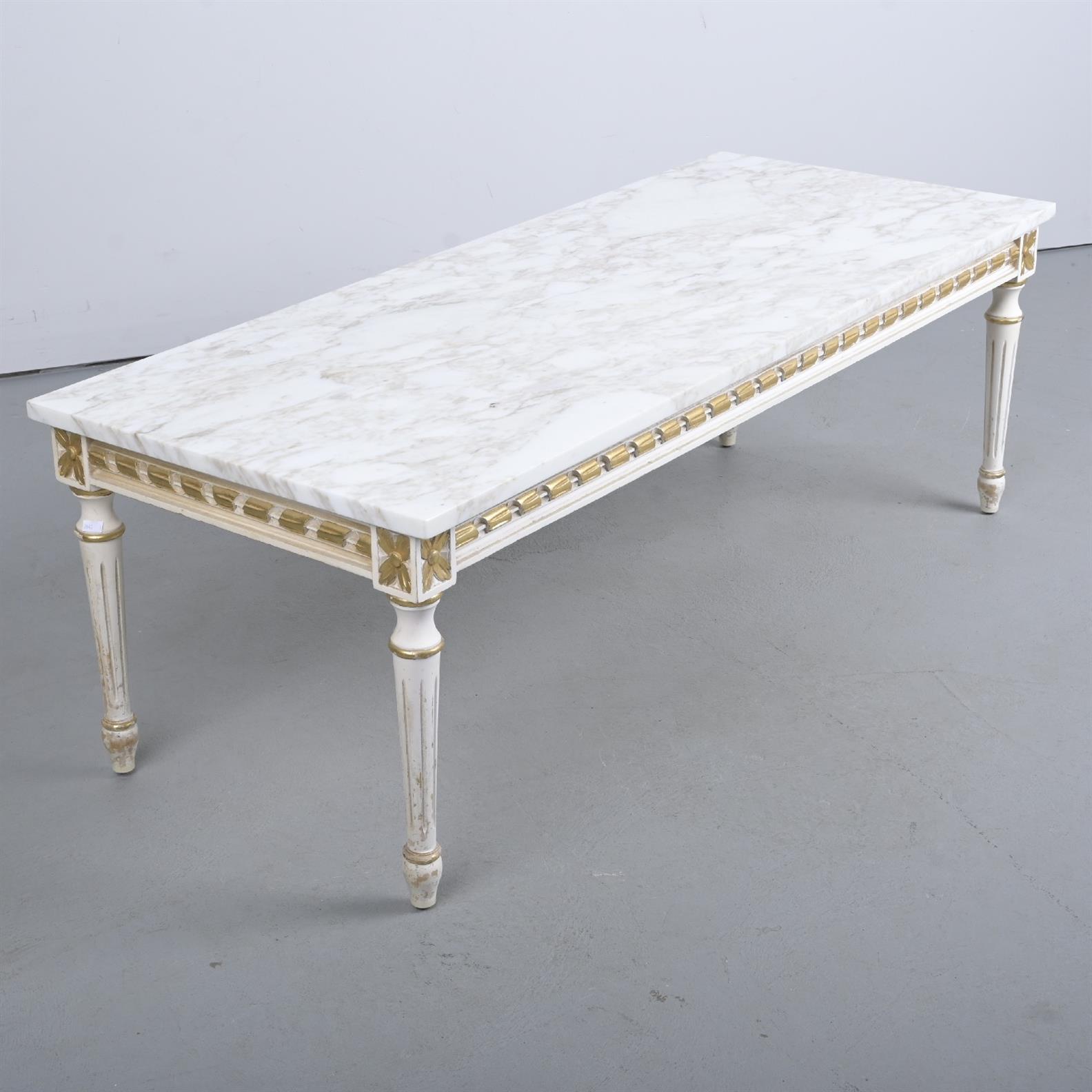 A MARBLE TOP COFFEE TABLE (A/F) (47H X 137W X 56D CM) (THIS ITEM MUST BE REMOVED BY CARRIERS AT THE CUSTOMER'S EXPENSE. LEONARD JOEL STAFF CANNOT ASSIST CARRYING THIS ITEM.)