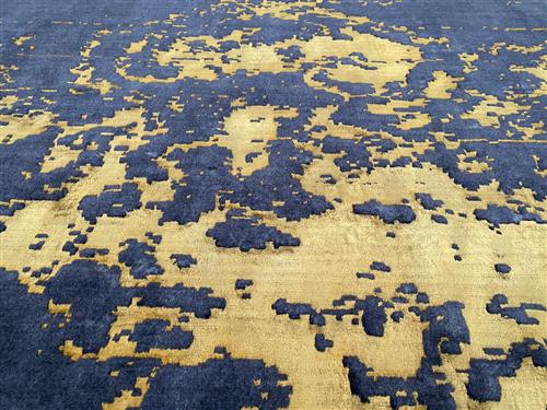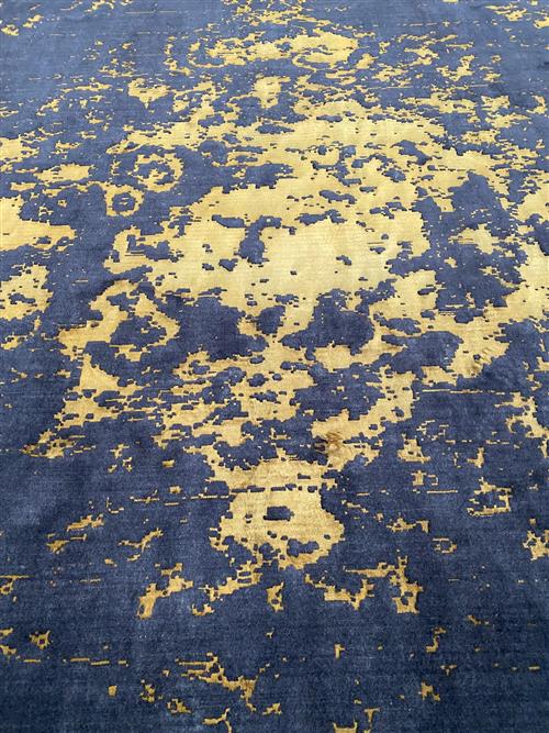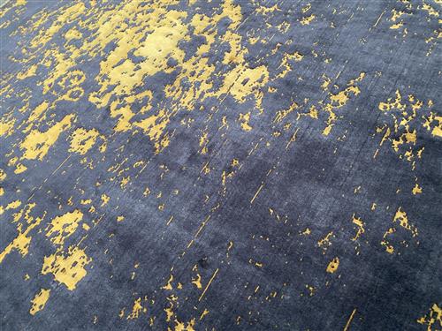 A NEW CONTEMPORARY GALAXY DESIGNER WOOL RUG WITH TENCEL SILK HIGHLIGHTS. IN CHARCOAL GOLDEN AND SAFFRON SHADES. HANDMADE. GALLERY DISPLAYED IN PRISTINE CONDITION. ORIGIN: IRAN ( 290 X 241 CM) (PLEASE NOTE THERE MAY BE SOME COLOUR VARIATION FROM PHOTOGRAPH)