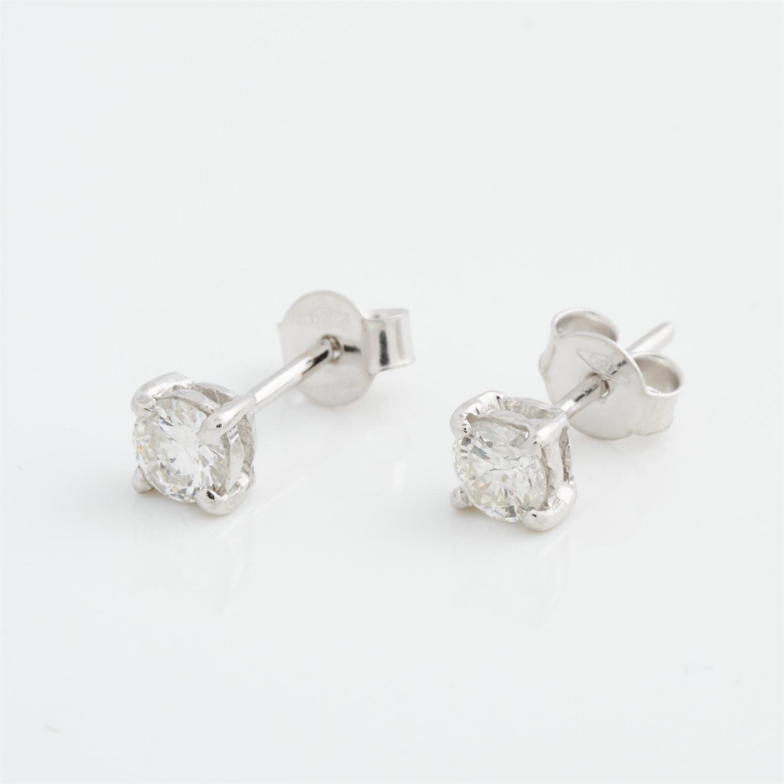 A PAIR OF DIAMOND EARRINGS IN 18CT WHITE GOLD, THE DIAMONDS TOTALLING 0.58CTS, TO POST AND BUTTERFLY FITTINGS, 1.0GMS