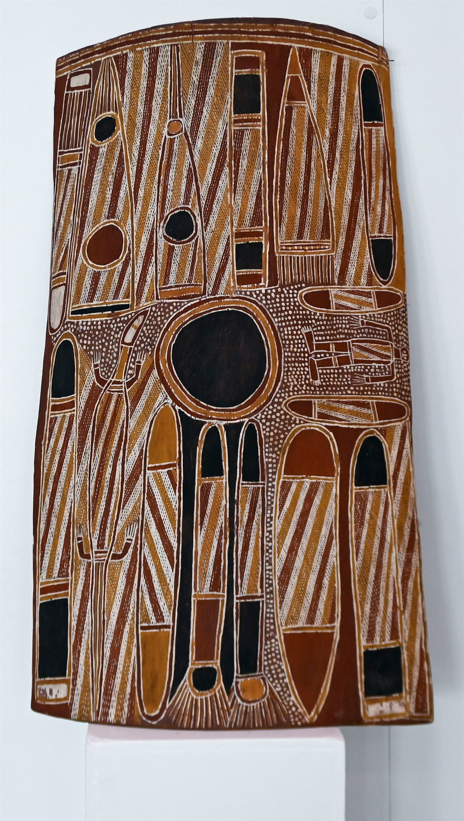 DAVID DAYMIRRINGU MALANGI (1927-1999) (Language group: Djinang/Liyagalawumirr) Djalambu Ceremony - Water Lily with Diver Bird 1968 n...