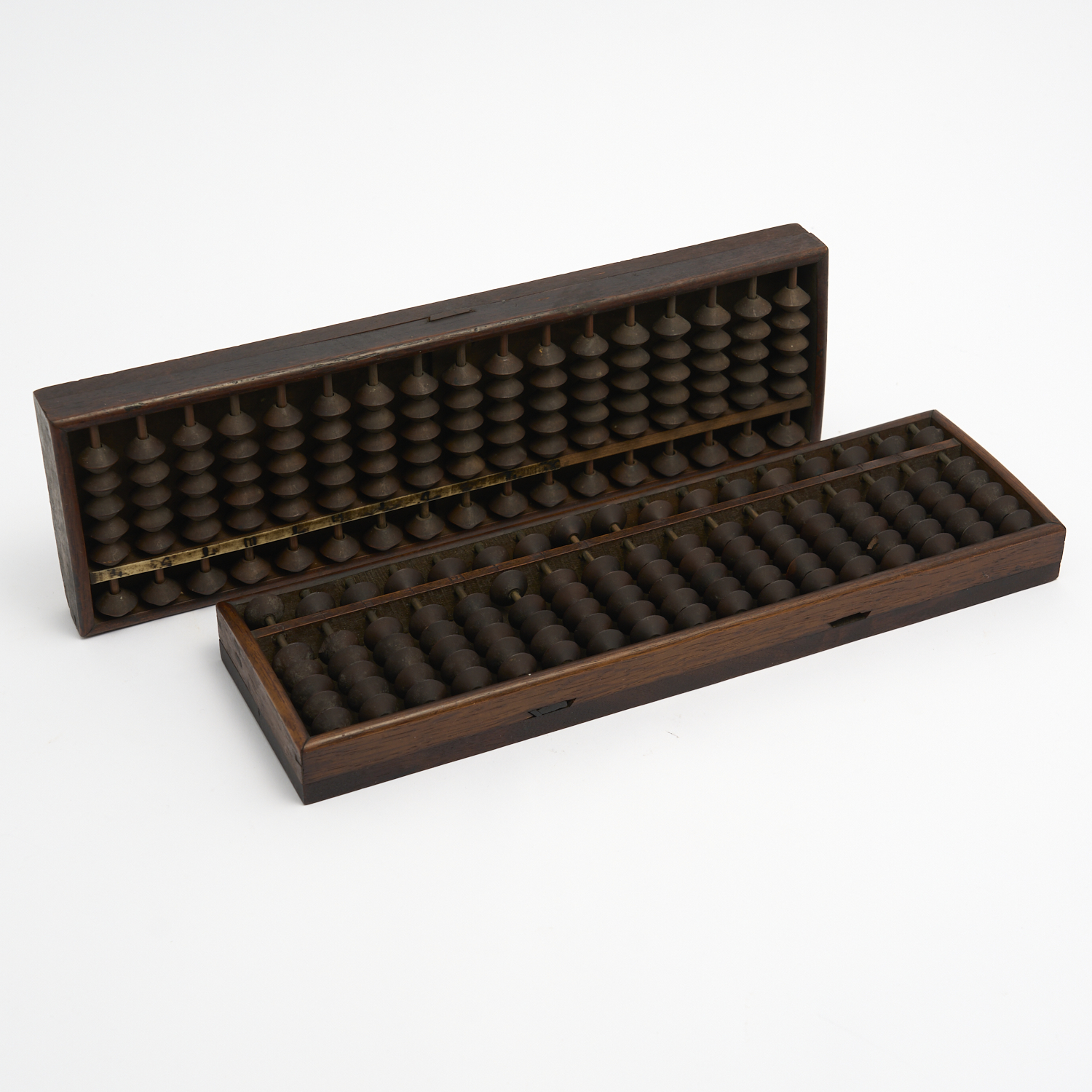 TWO EARLY 20TH CENTURY WOOD AND BONE WORKING ABACUS W.37CM, LEONARD JOEL DELIVERY SIZE: MEDIUM