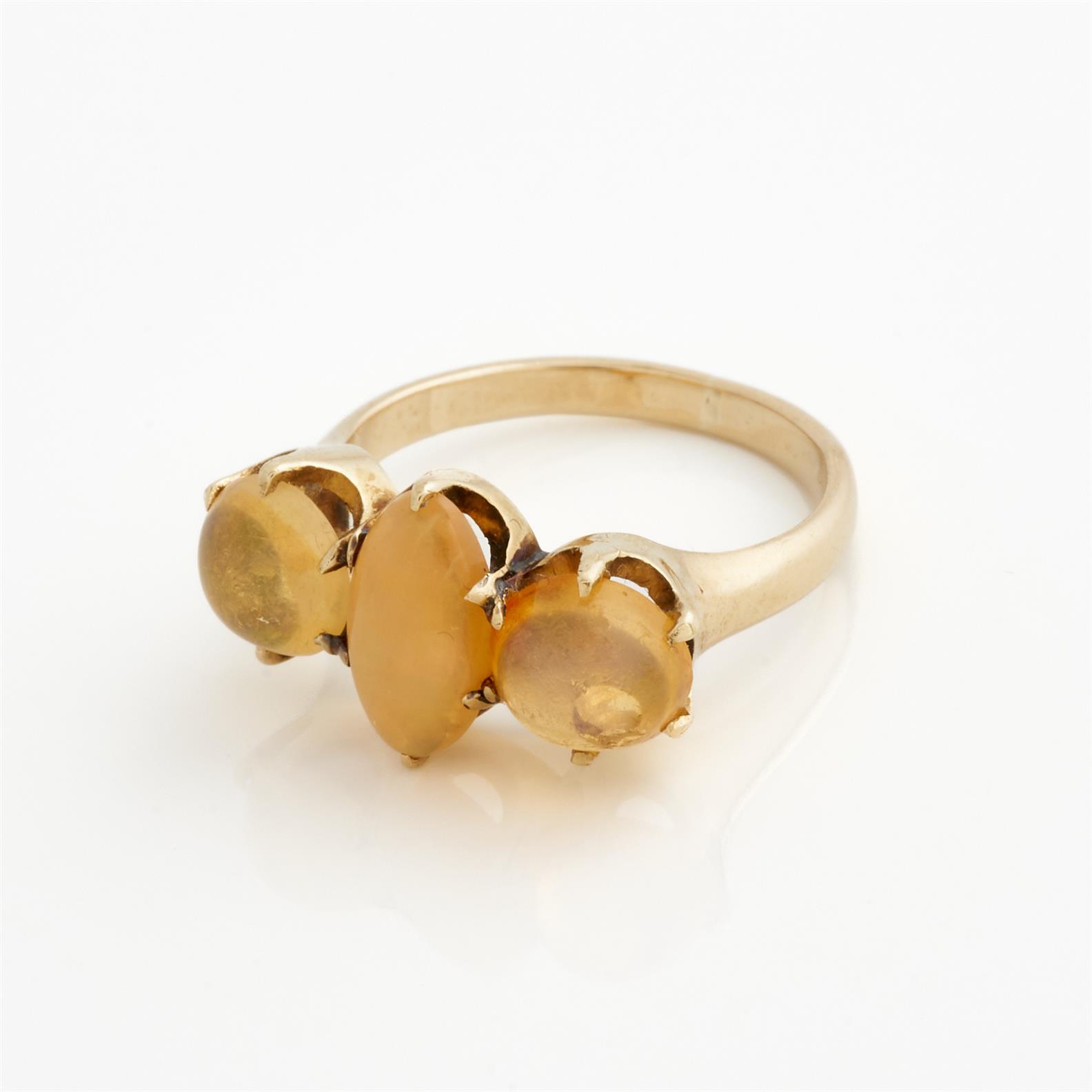 A MEXICAN FIRE OPAL RING IN 14CT GOLD, SIZE L, 3.9GMS
