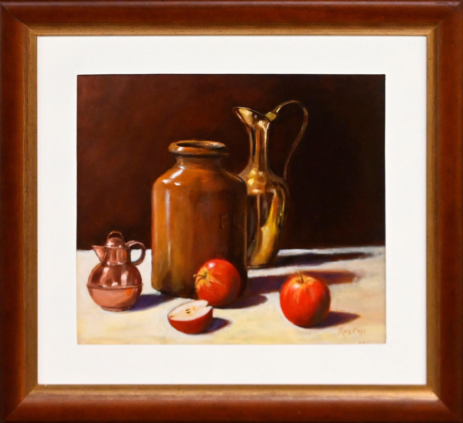 REX FAGG, (STILL LIFE WITH APPLES AND JUGS),