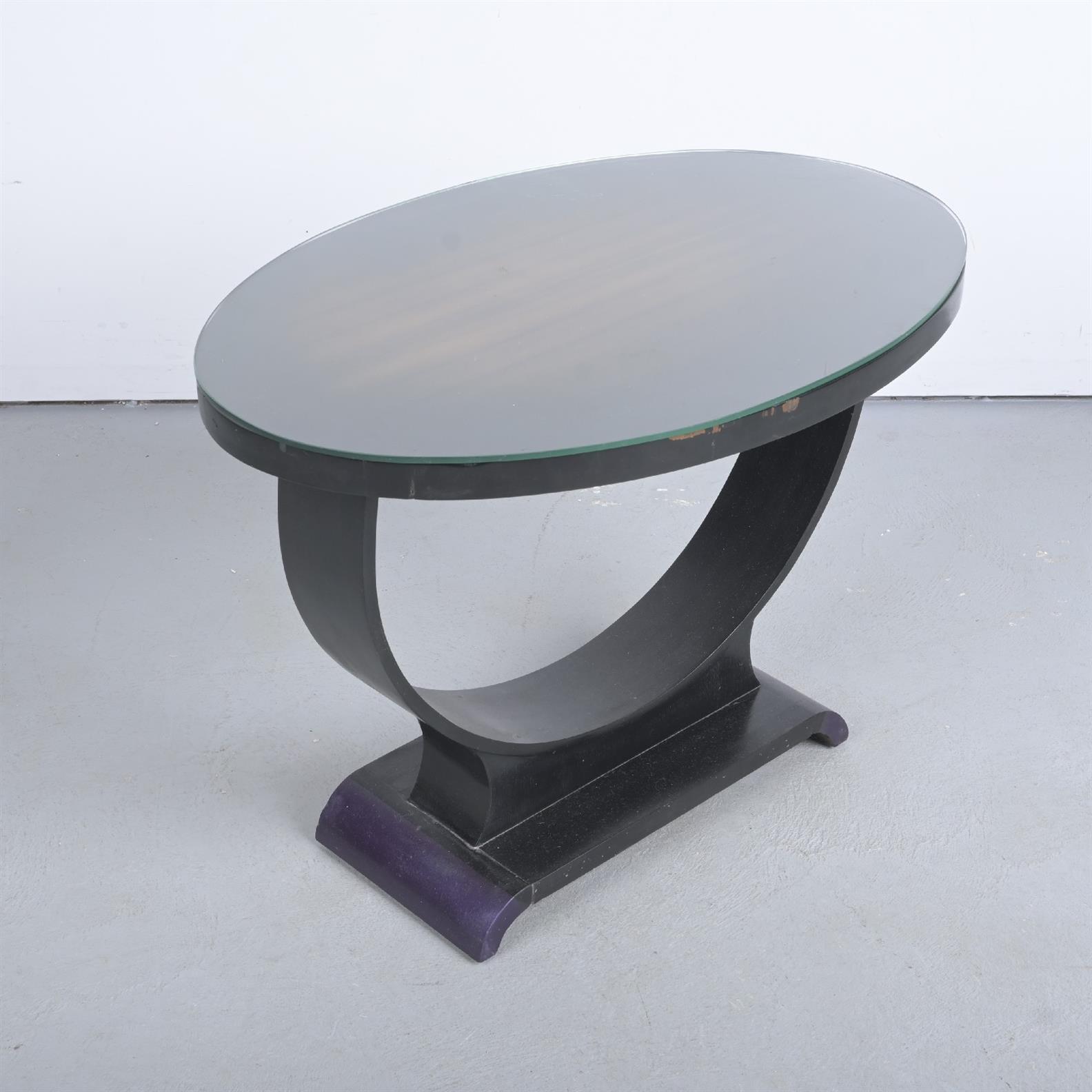 AN ART DECO-STYLE TABLE WITH GLASS TOP (60H X 80W X 53D CM)