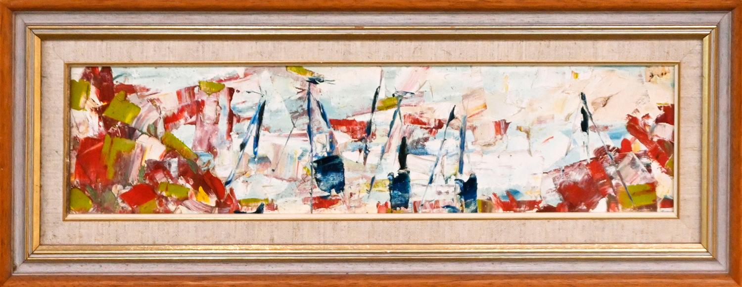 OIL ON CANVASBOARD, SIGNED INDECIPHERABLY LOWER RIGHT, 13 X 55CM, FRAME SIZE: 26 X 68CM