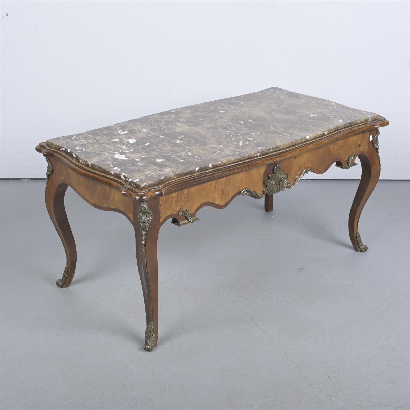 A LOUIS XV-STYLE MARBLE TOPPED COFFEE TABLE (52H X 107W X 56D CM)