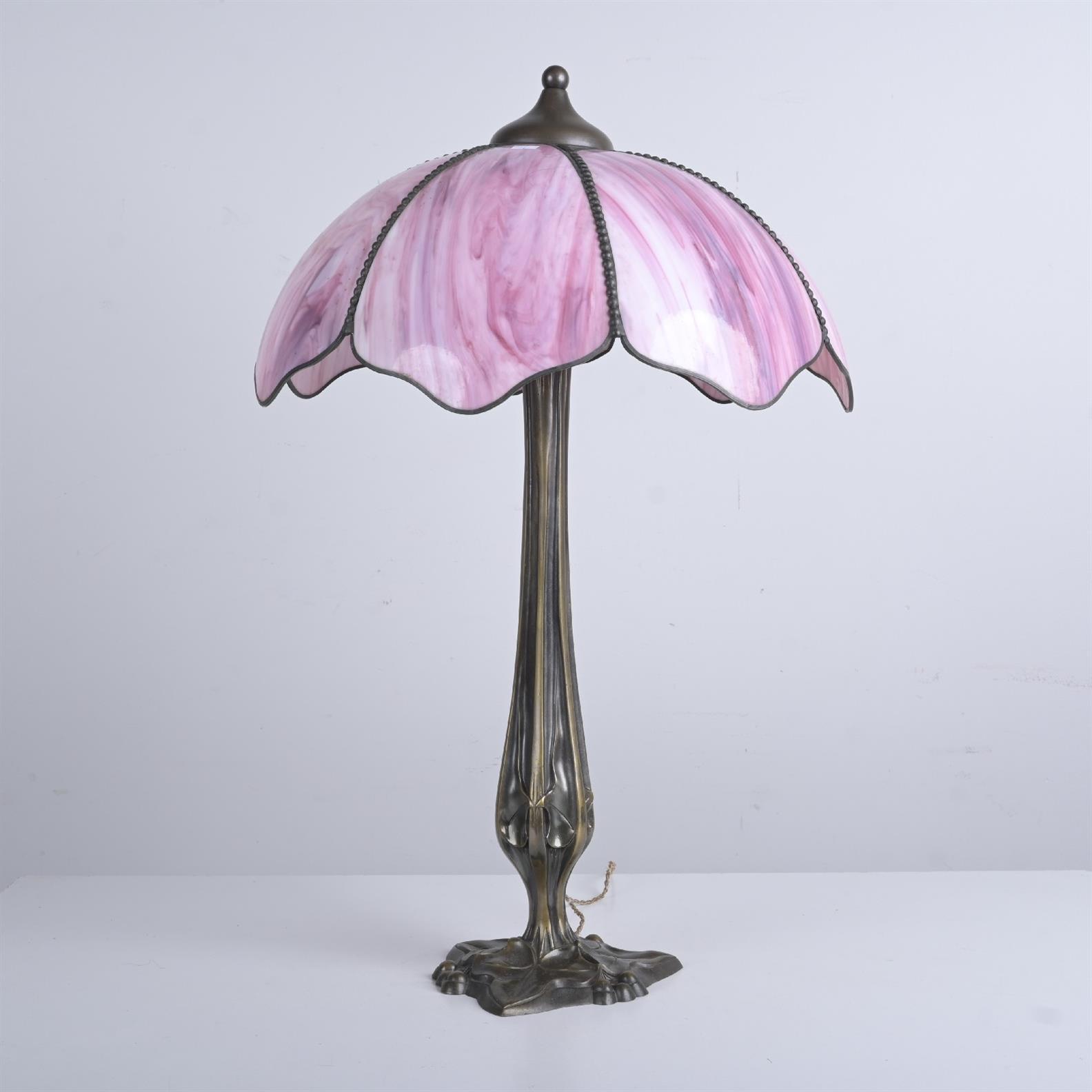 A LARGE ART NOUVEAU-STYLE TABLE LAMP (A/F) (87H X 53DIA CM)