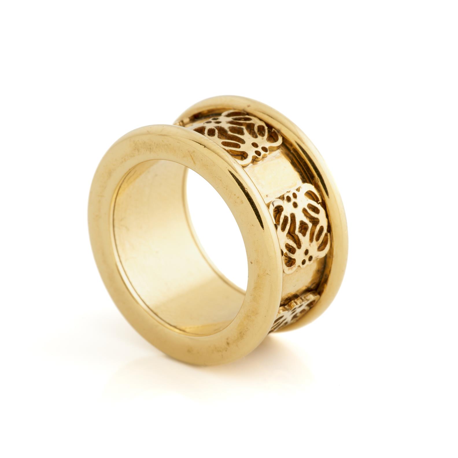 LOEWE, A LOGO RING IN GOLD PLATE, SIZE J - K1/2, ACCOMPANIED BY A POUCH