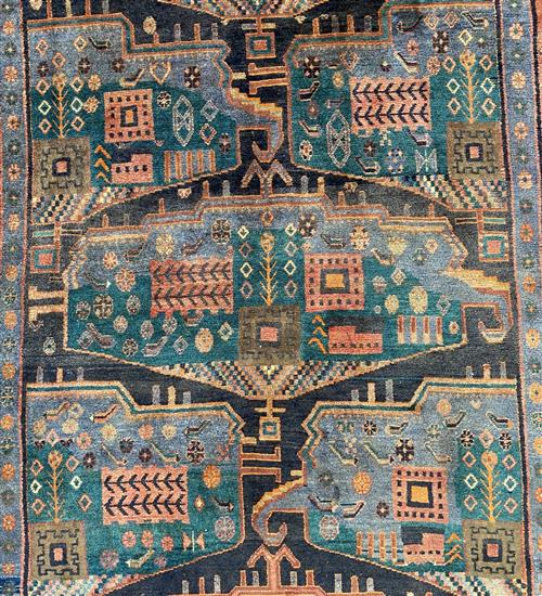 A PERSIAN ARCHAEOLOGY DESIGN KASHMAR WOOL RUG. HAND-KNOTTED CITY WEAVE FROM THE KHORASAN PROVINCE WITH TRADITIONAL DESIGN OF CENTRAL...