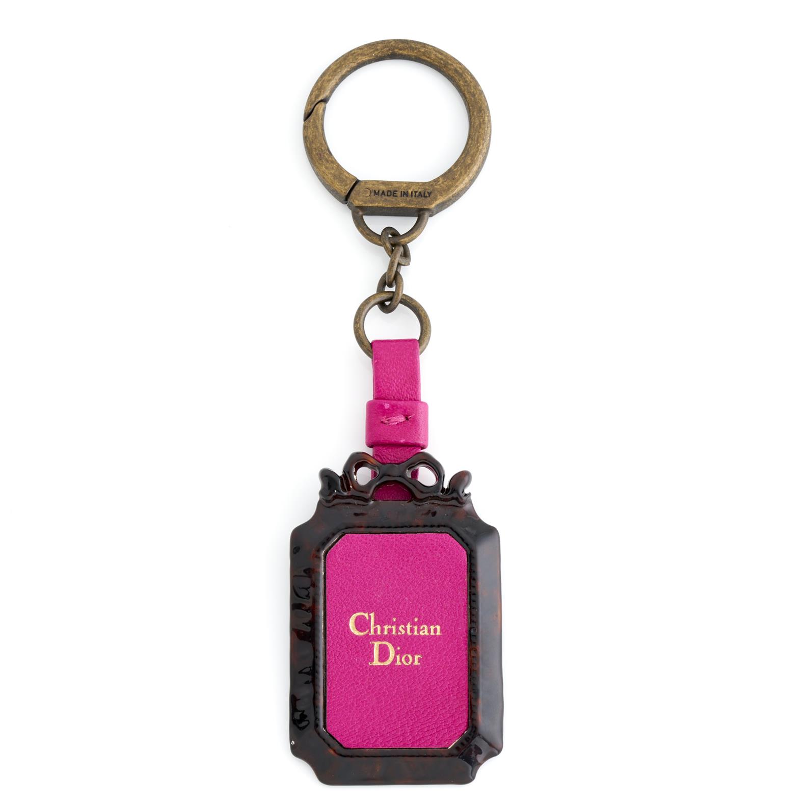 DIOR, A KEY RING STYLED IN FAUX TORTOISE SHELL AND PINK LEATHER, DROP LENGTH 11CM
