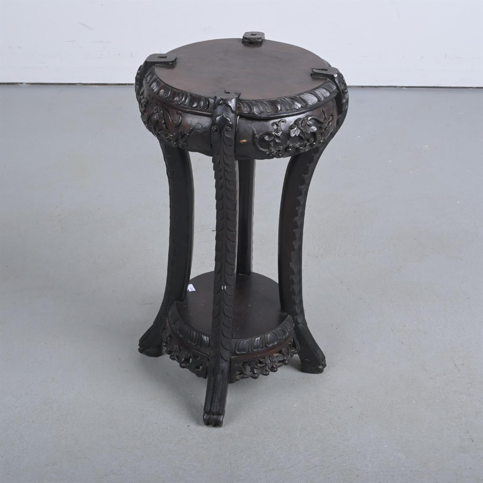 A CARVED ROSEWOOD PEDESTAL (A/F) (62H X 34DIA CM)
