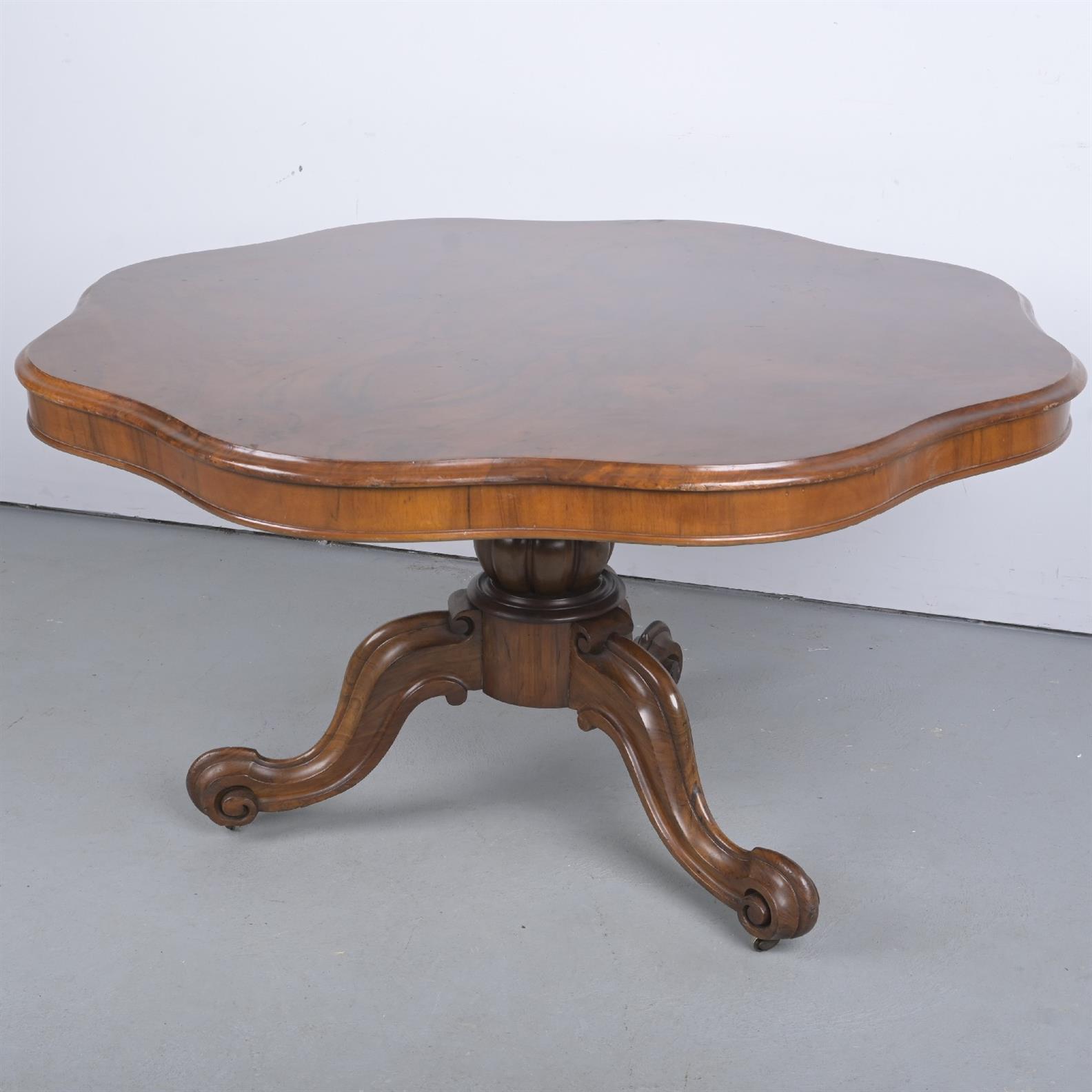 A VICTORIAN WALNUT CENTRE TABLE (A/F) (75H X 132DIA CM)