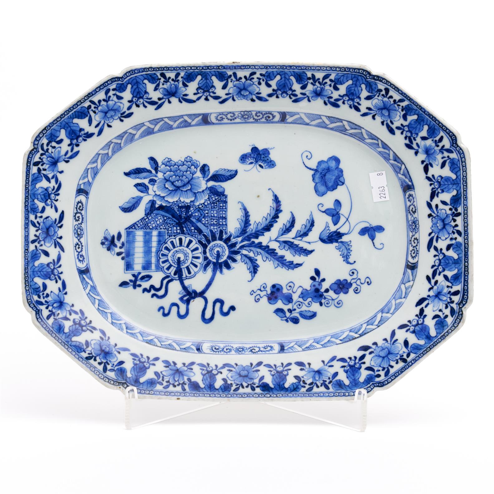 A BLUE AND WHITE EXPORT PLATE, YONGZHENG PERIOD L.33CM, LEONARD JOEL DELIVERY SIZE: MEDIUM