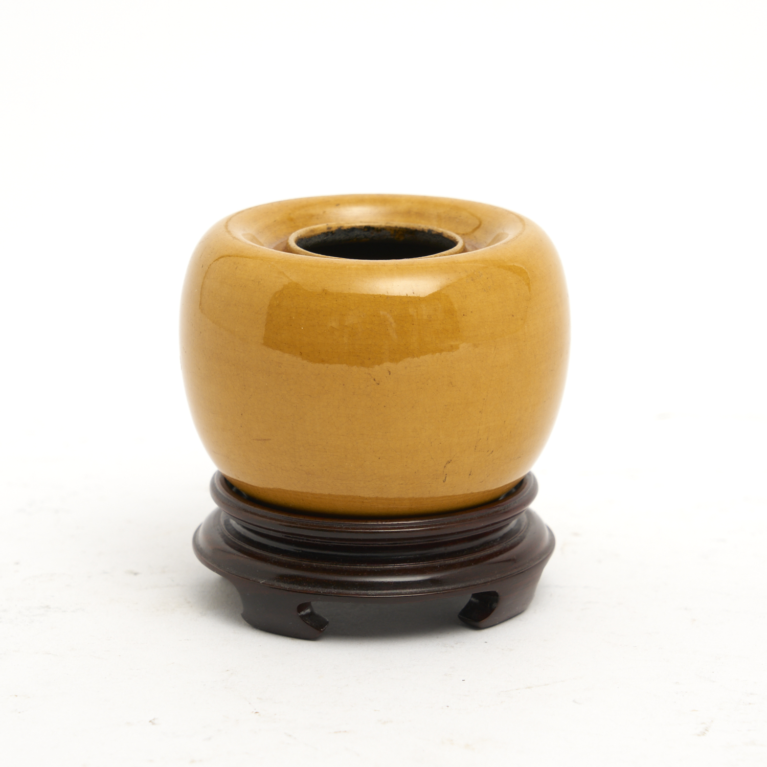 A 20TH CENTURY YELLOW BRUSH WASHER ON STAND (BOXED) DIA.7CM, LEONARD JOEL DELIVERY SIZE: SMALL