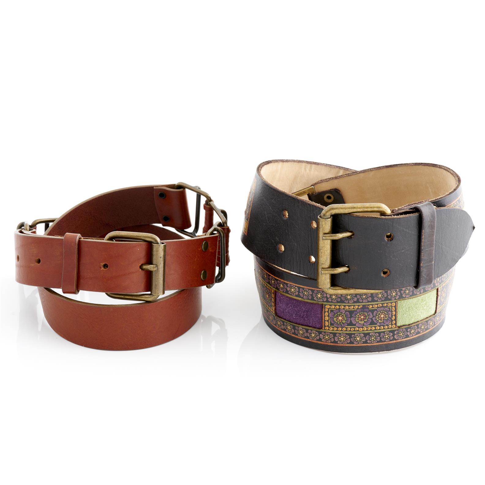 A PAIR OF BRAZILLIAN BELTS, EACH STYLED IN BROWN LEATHER, ONE WITH HAND PAINTED DETAILING