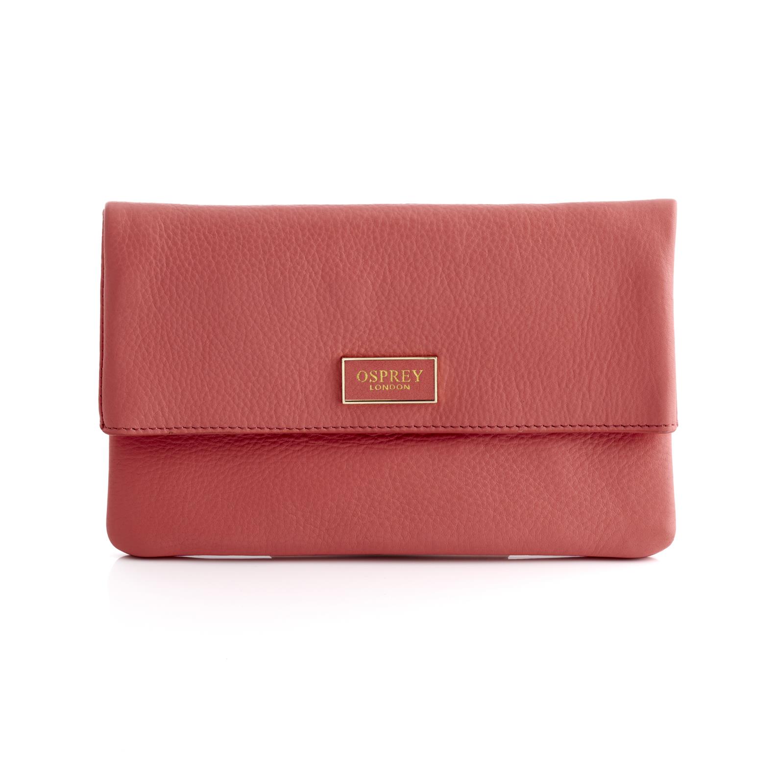 OSPREY, A ZIP POUCH STYLED IN PINK LEATHER, FEATURING SILVER TONE DETAIL, 14 X 22 X 1CM