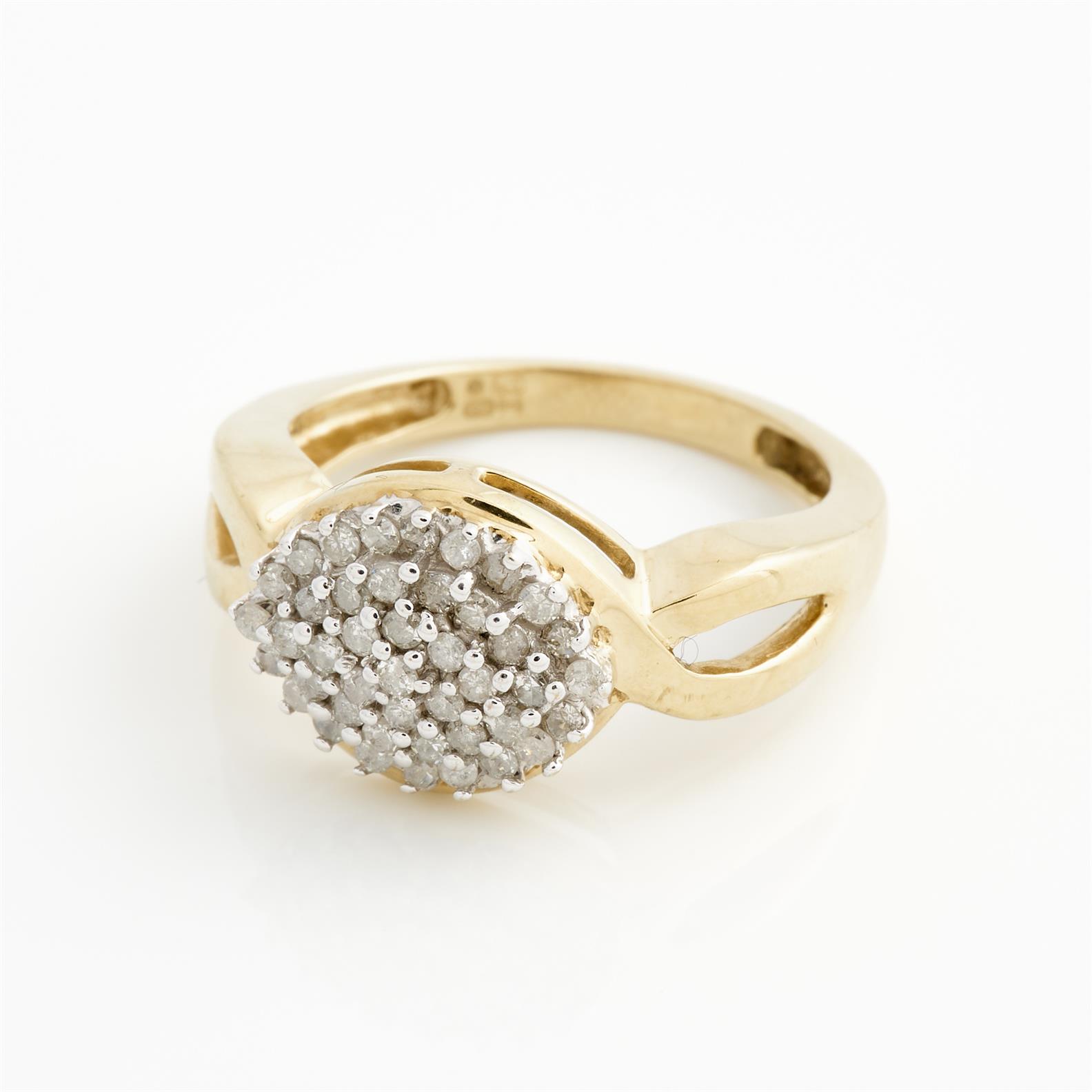 A DIAMOND CLUSTER RING IN 9CT GOLD, THE DIAMONDS TOTALLING 0.50CTS, SIZE P, 4.3GMS, ACCOMPANIED BY A GSL CERTIFICATE AA69583/7